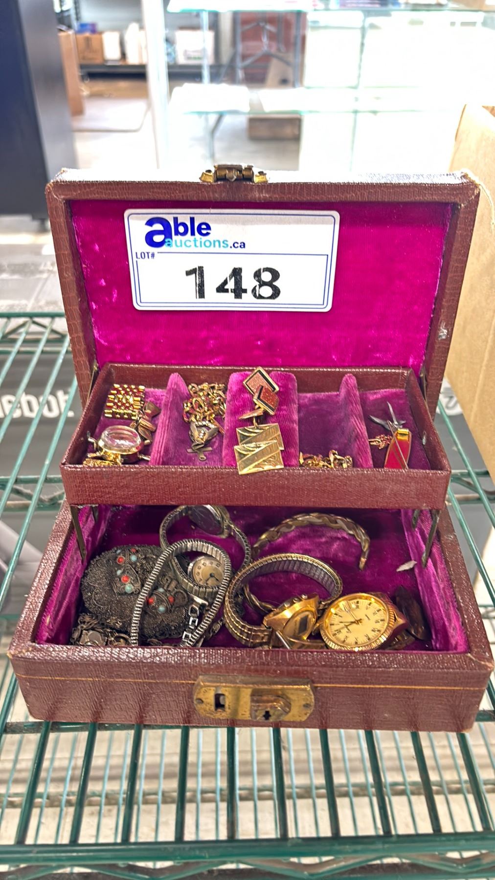JEWELLERY BOX FILLED WITH COSTUME JEWELLERY