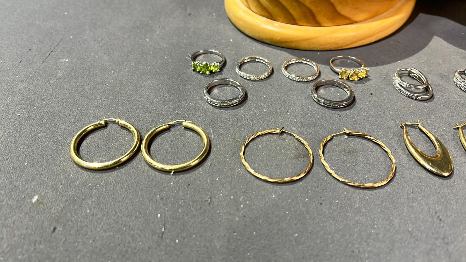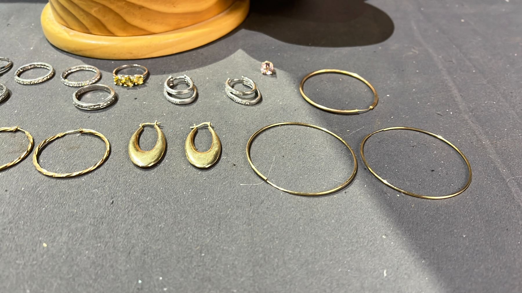 JEWELRY BOX WITH ASSORTED JEWELRY CONTENTS (SOME GOLD)