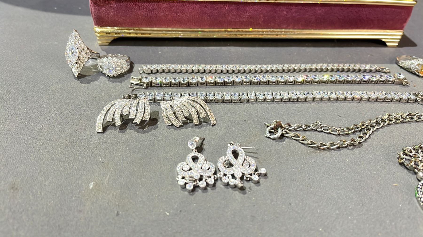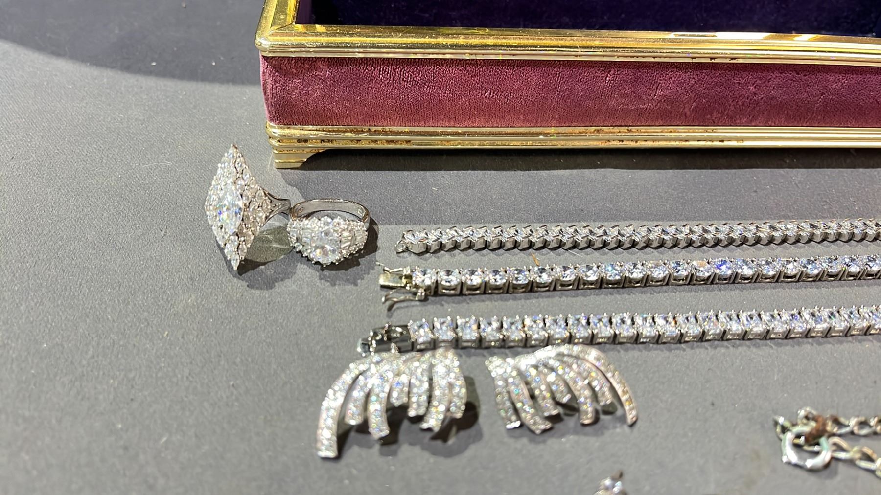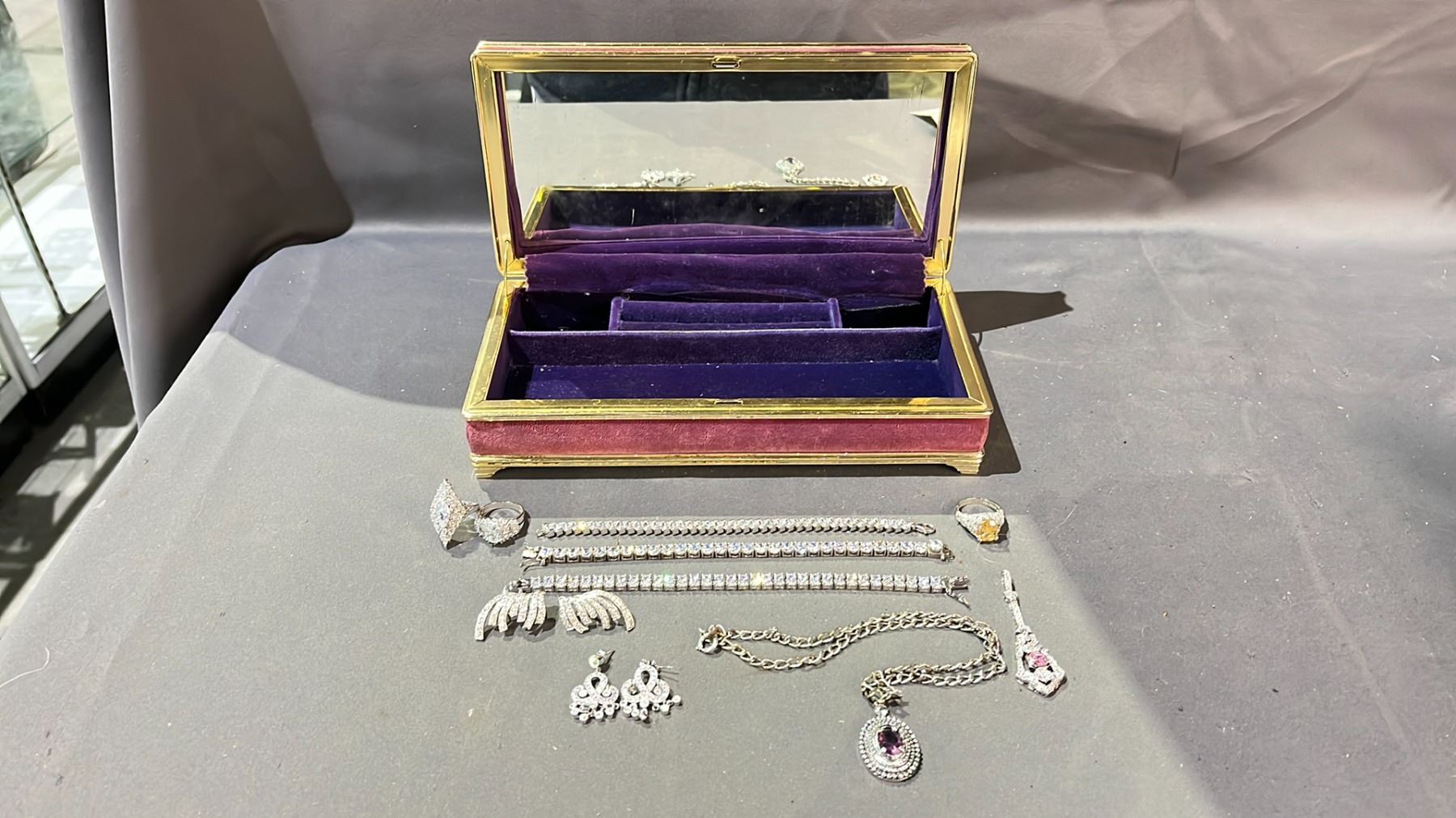 JEWELRY BOX WITH ASSORTED STERLING SILVER JEWELRY CONTENTS