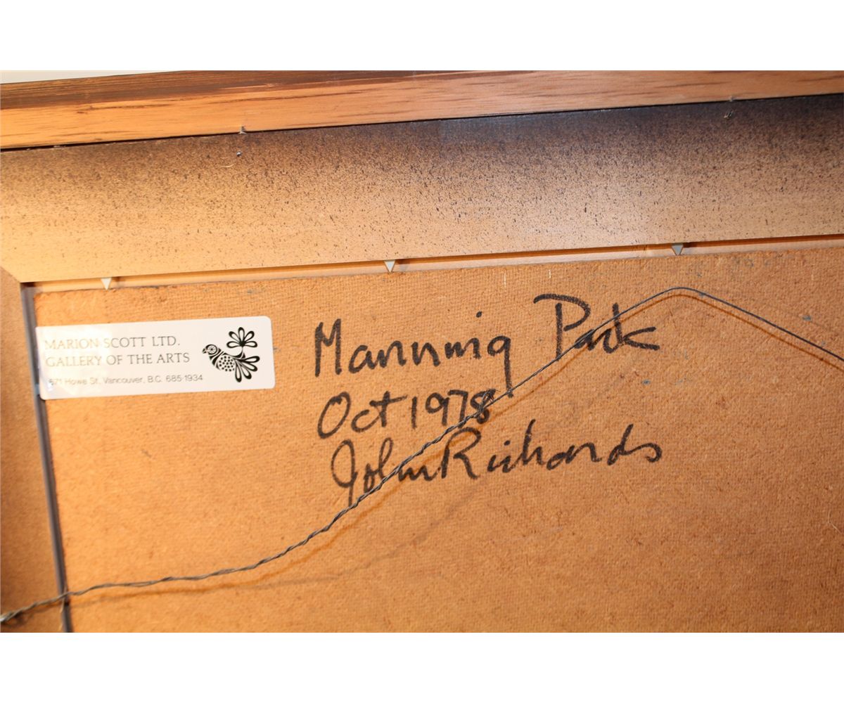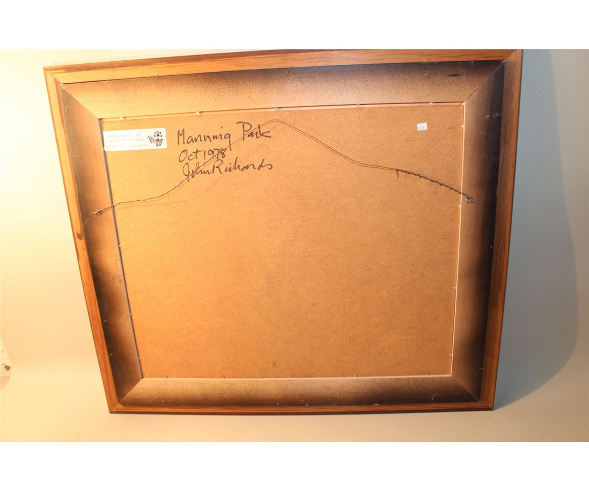 JOHN A. RICHARDS (CANADIAN B.1944) "MANNING PARK" OIL ON BOARD, SIGNED LOWER LEFT AND ON THE REVERSE, DATED 1978 20" X 24"