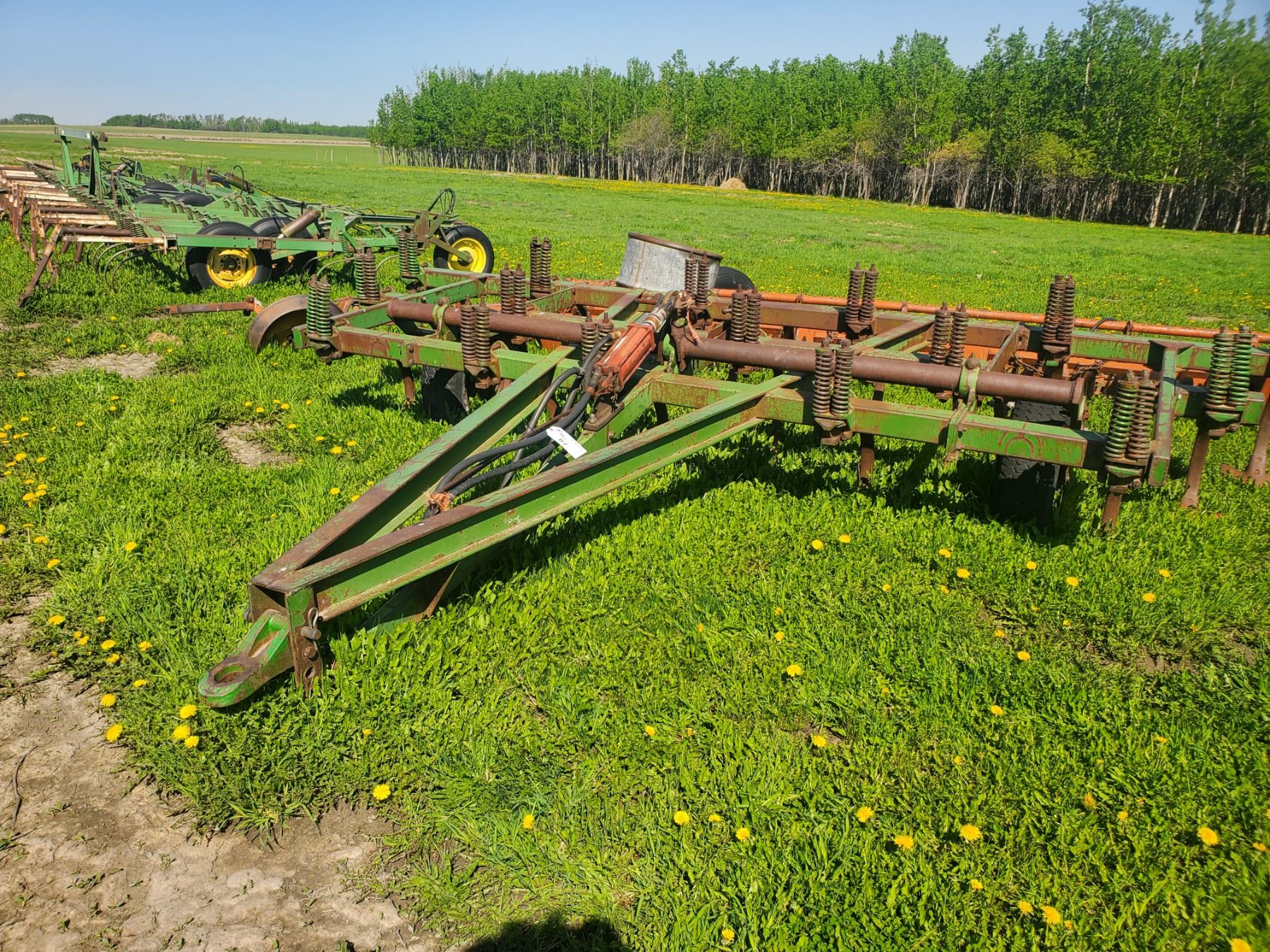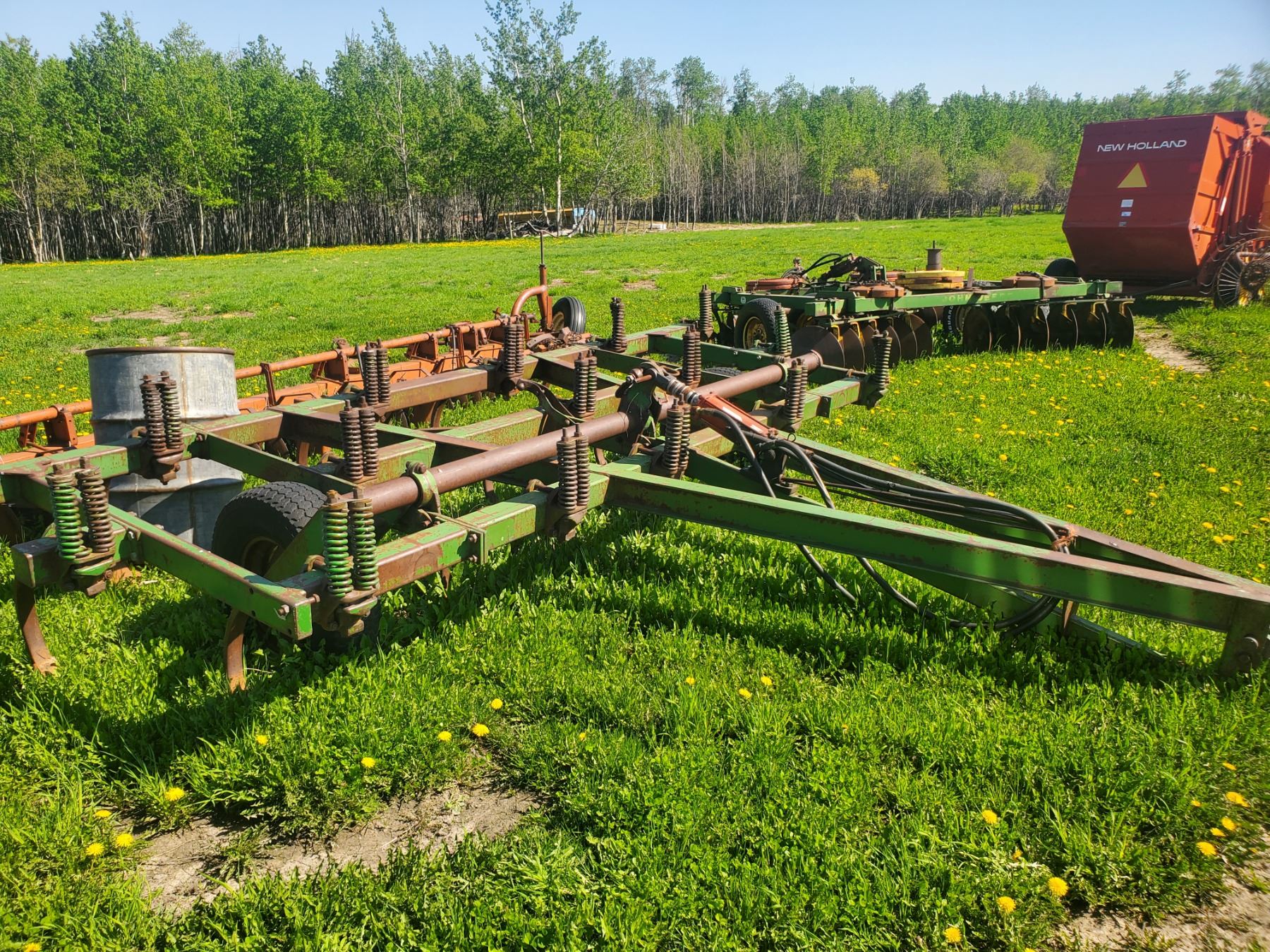 JOHN DEERE PULL BEHIND CULTIVATOR MAY OR MAY NOT BE MISSING PARTS, WORKING CONDITION UNKNOWN, *REQUIRES PROPER TRUCKS AND EQUIPMENT FOR REMOVAL* 14FT WIDE AS IT SITS