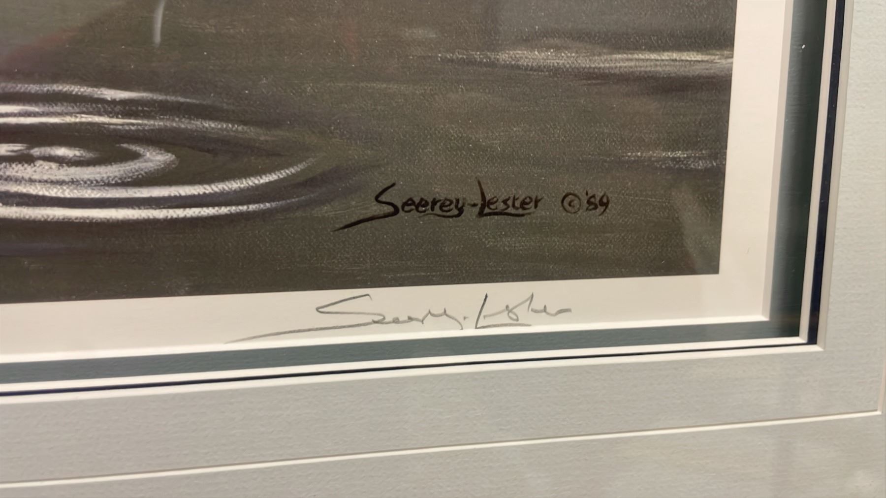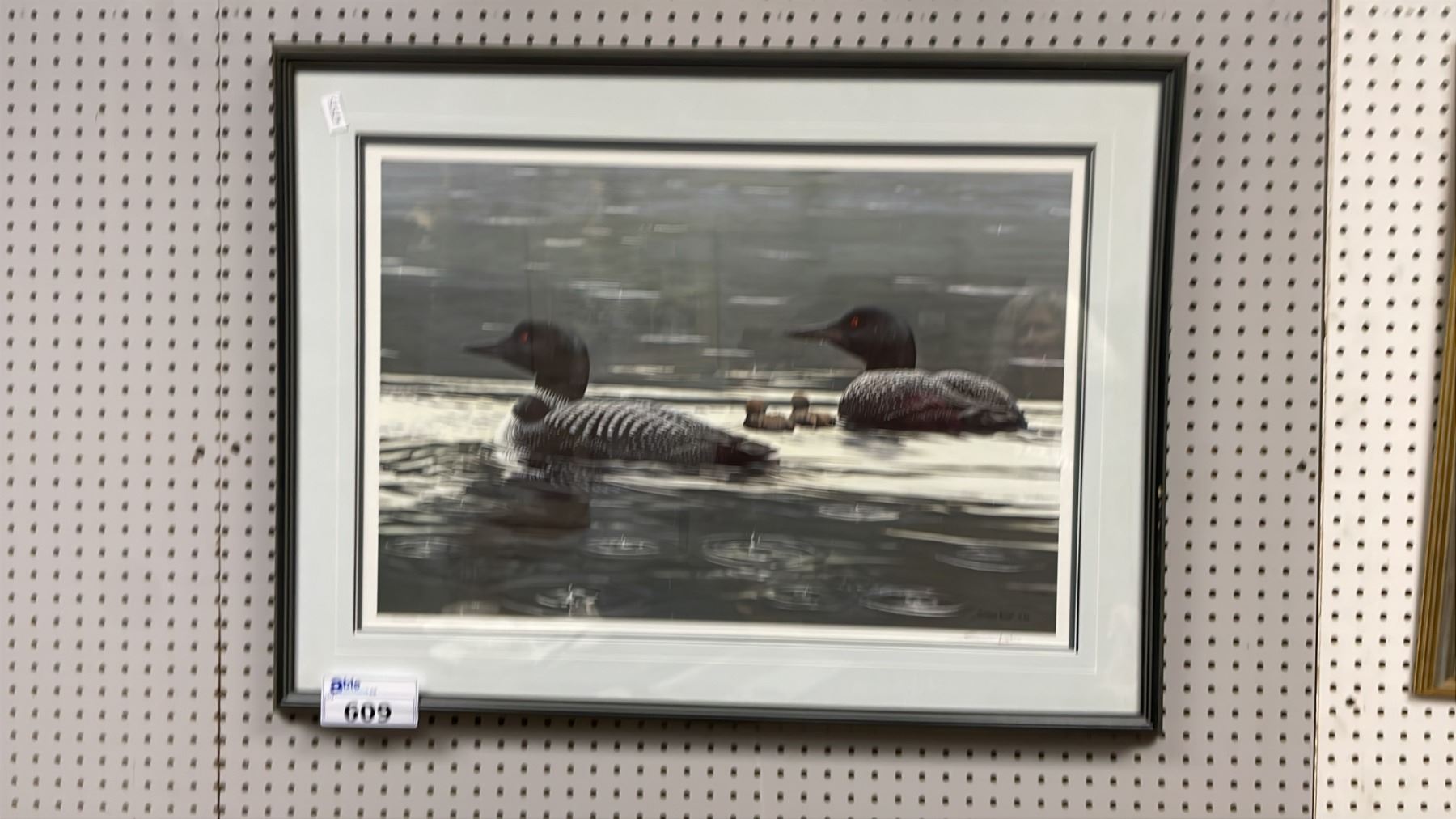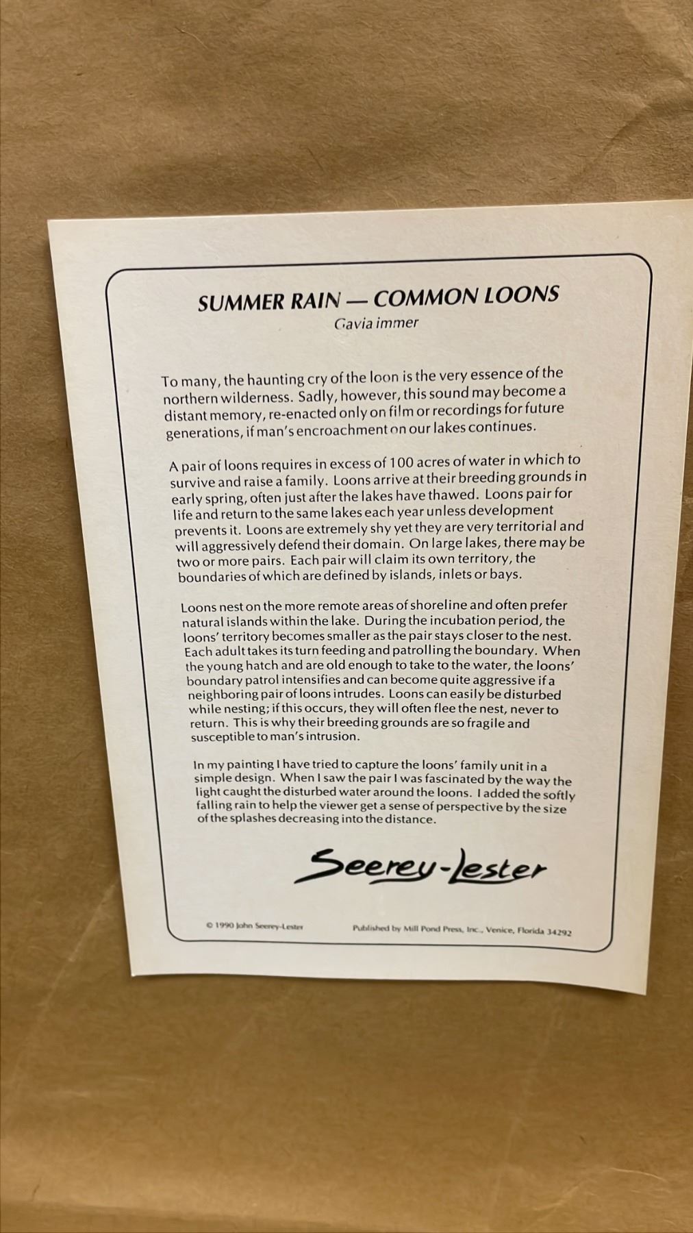 JOHN SEEREY-LESTER "SUDDEN RAIN - COMMON LOONS" SIGNED 38" X 28" FRAMED PRINT - 2505/4500