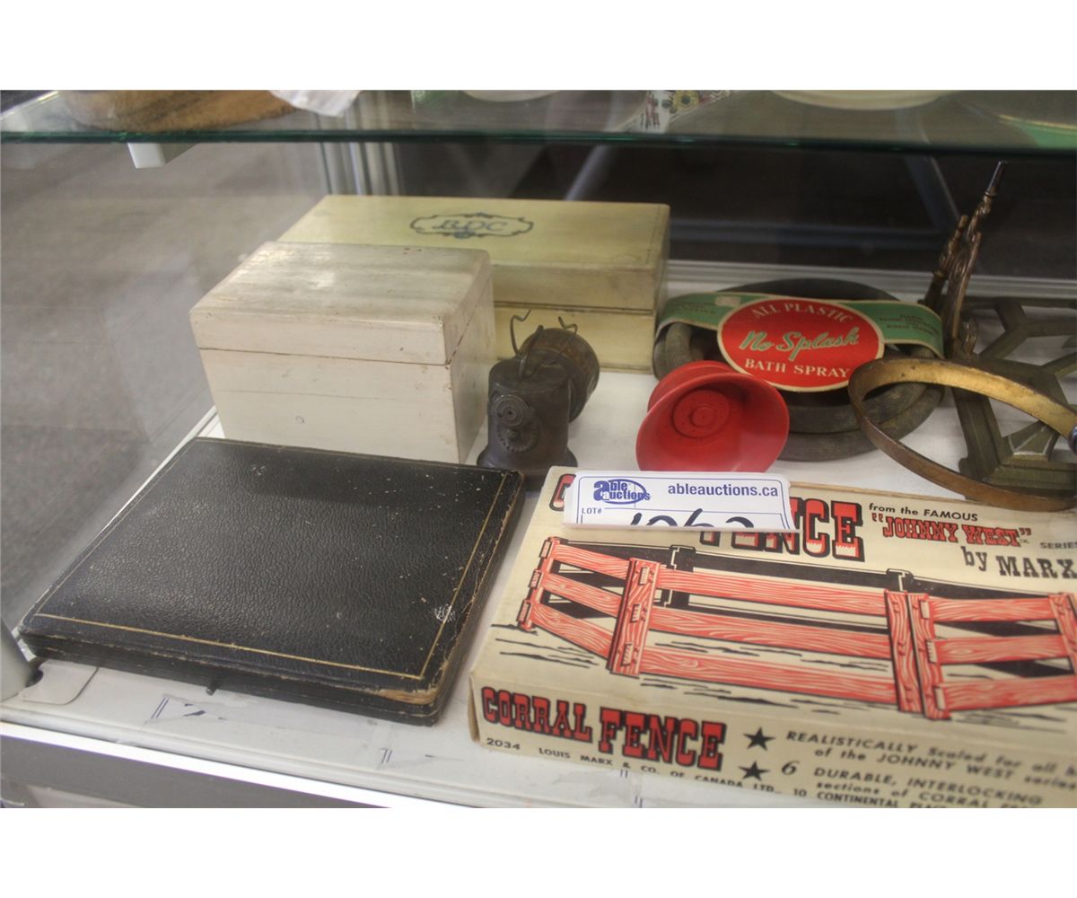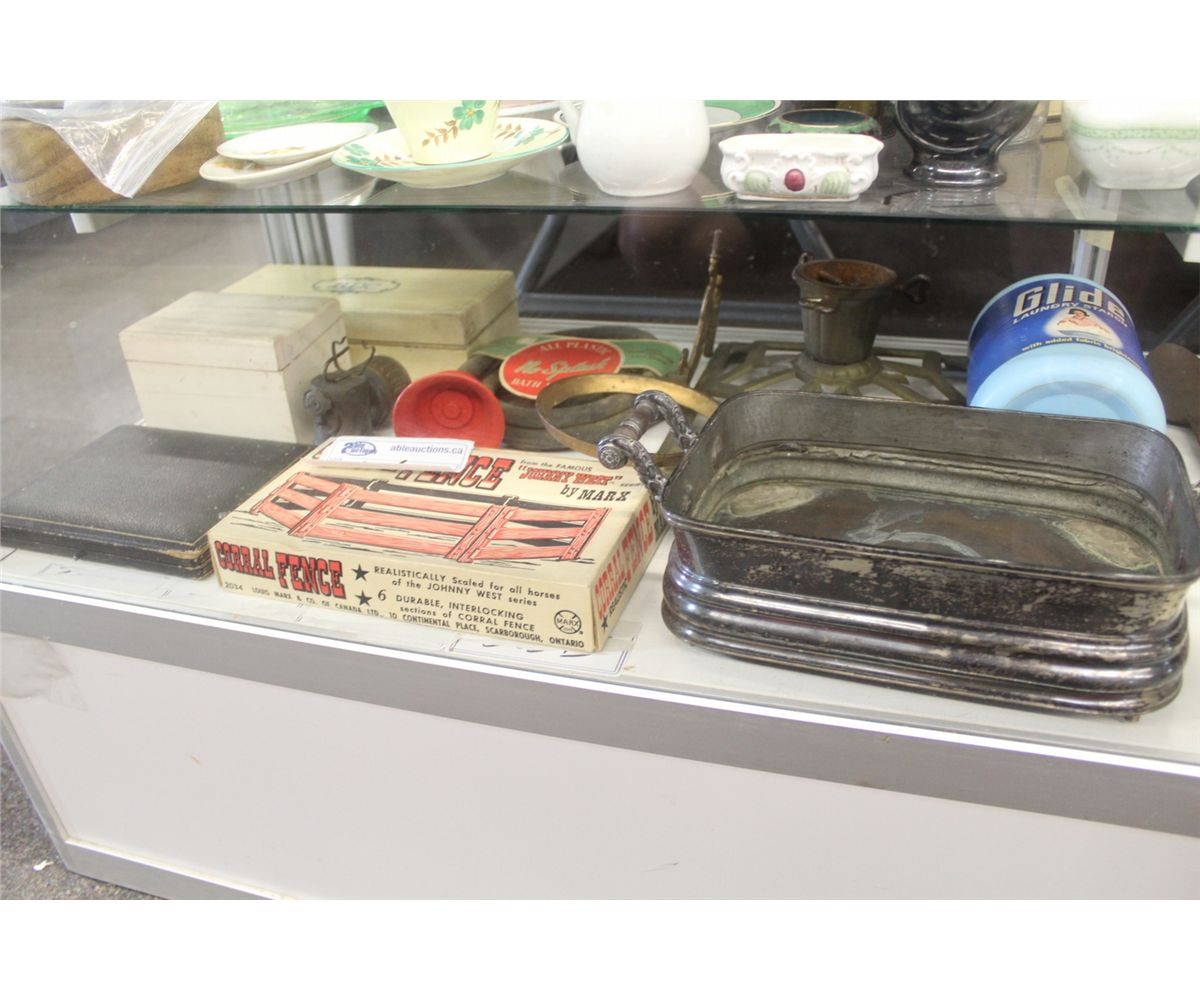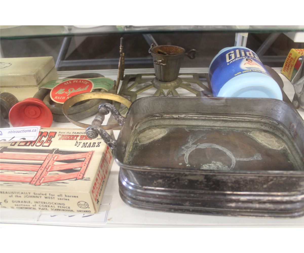 JOHNNY WEST CORRAL FENCE, TREE STAND, SERVING PLATTER, GLIDE LAUNDRY STARCH, NO-SPLASH HOSE AND OTHER COLLECTIBLES