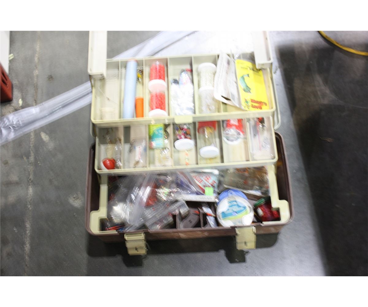 JOHNSON SEAHORSE 5HP OUTBOARD MOTOR, AND TACKLE BOX WITH CONTENTS