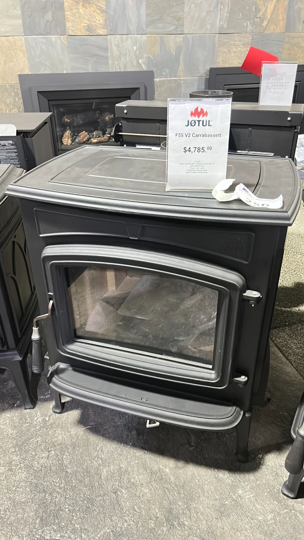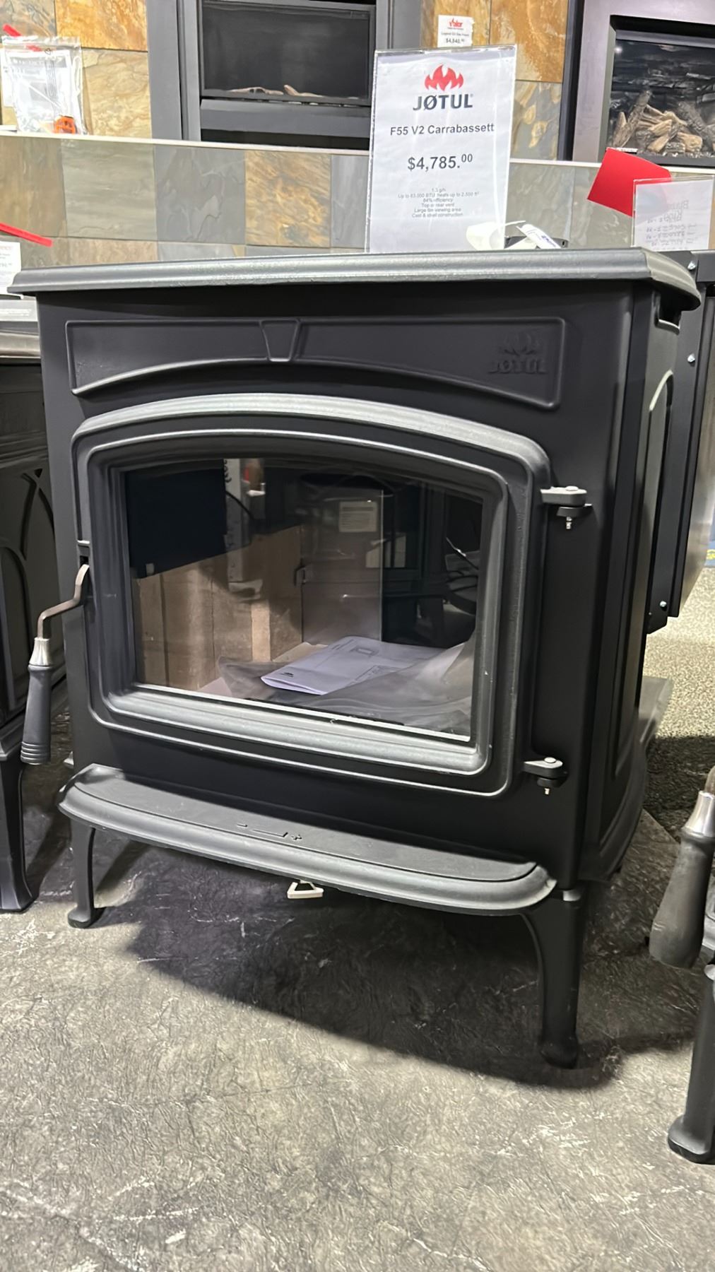JOTUL F500 OSLO V3 CLEAN FACE CATALYTIC WOOD STOVE. HEATS UP TO 2,300 SQ FT, .5 G/HR, UP TO 24" LOGS, LEFT SIDE OPEN DOOR, REAR HEATSHIELD AND ASH DRAWER