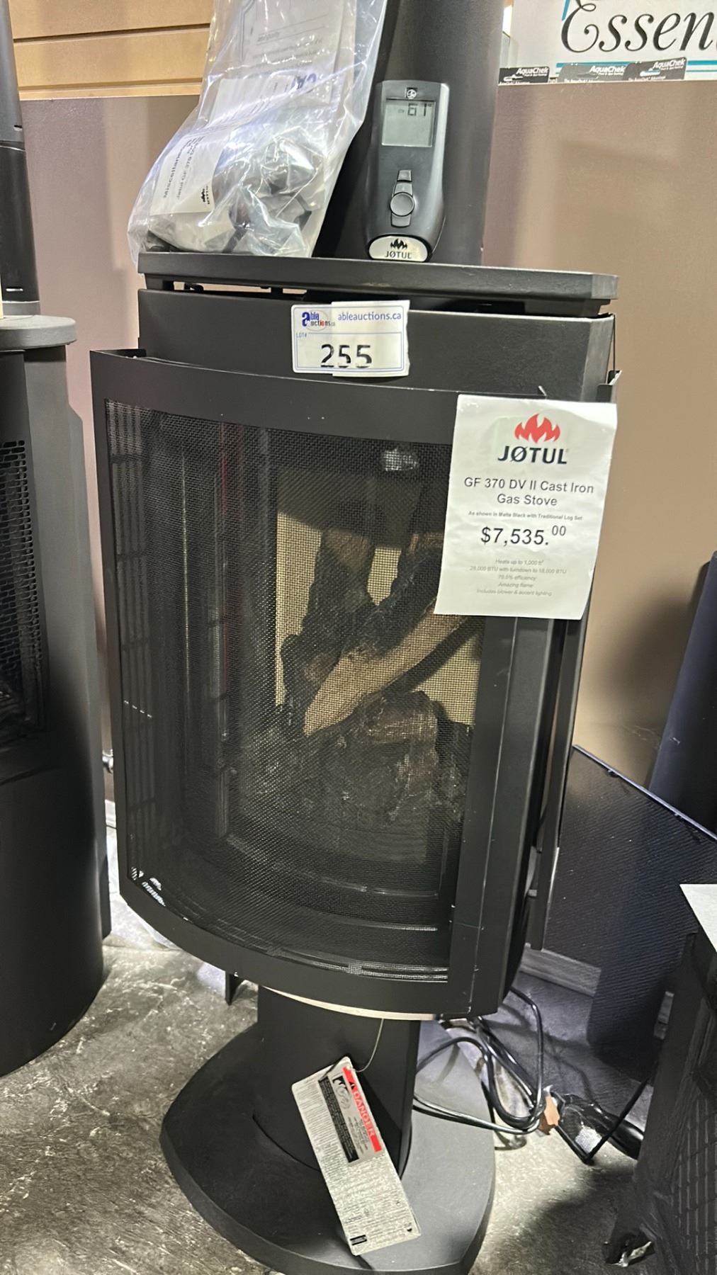 JOTUL GF 370 DV II CAST IRON GAS STOVE. HEATS UP TO 1,000 SQ FT, 28,000 BTU WITH TURNDOWN TO 18,000 BTU, 70.5% EFFICIENCY, AMAZING FLAME, INC BLOWER & ACCENT LIGHTING
