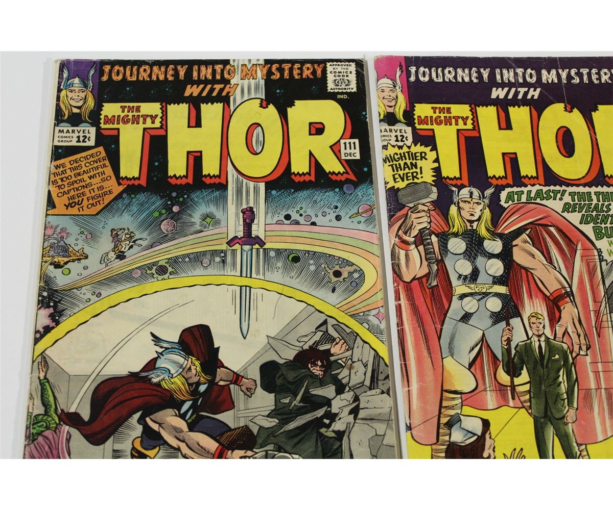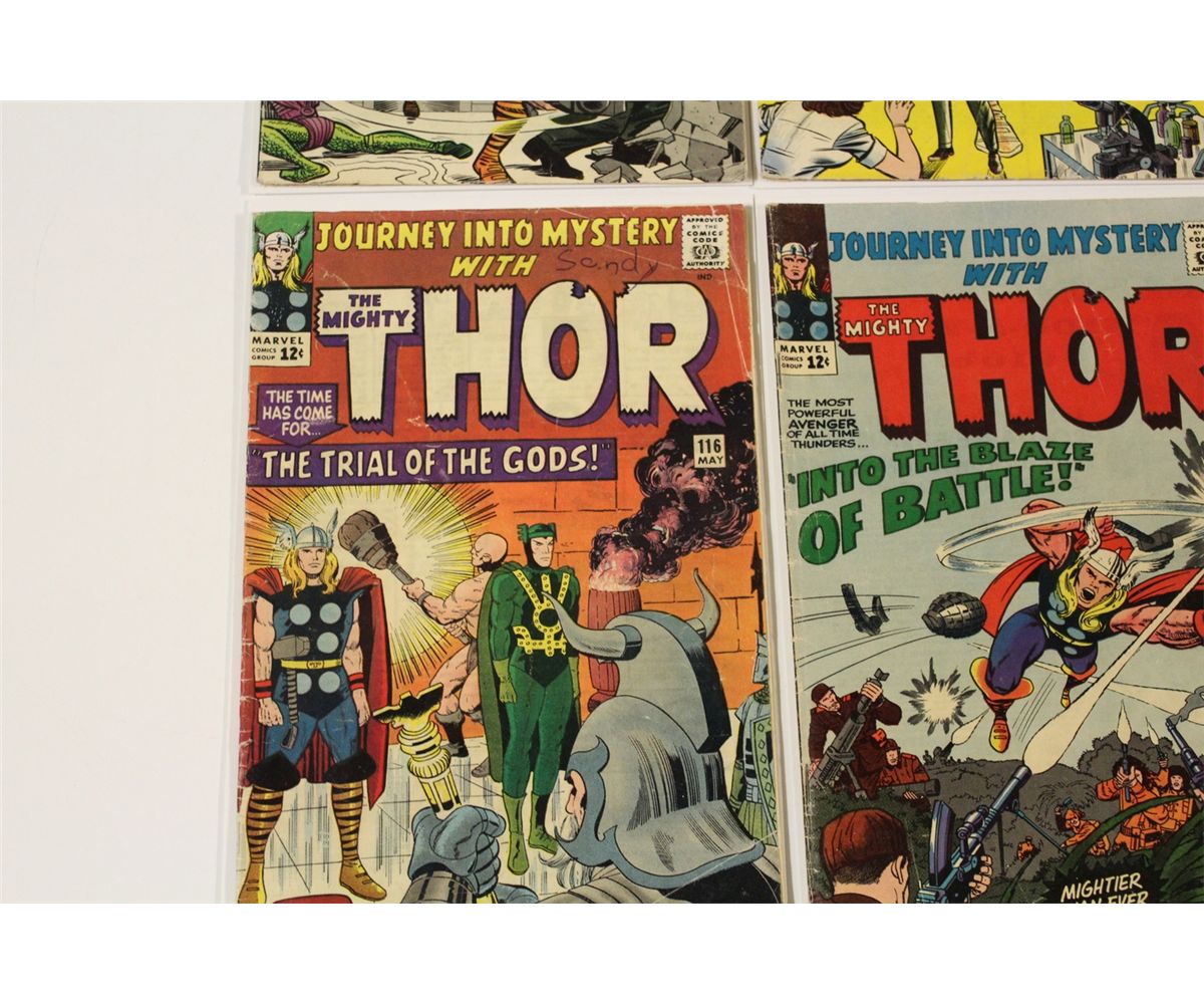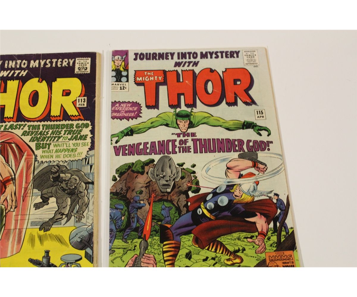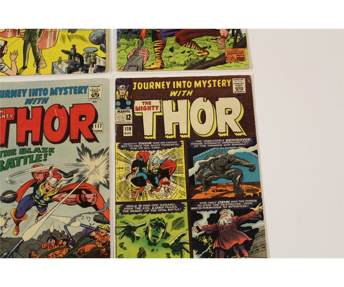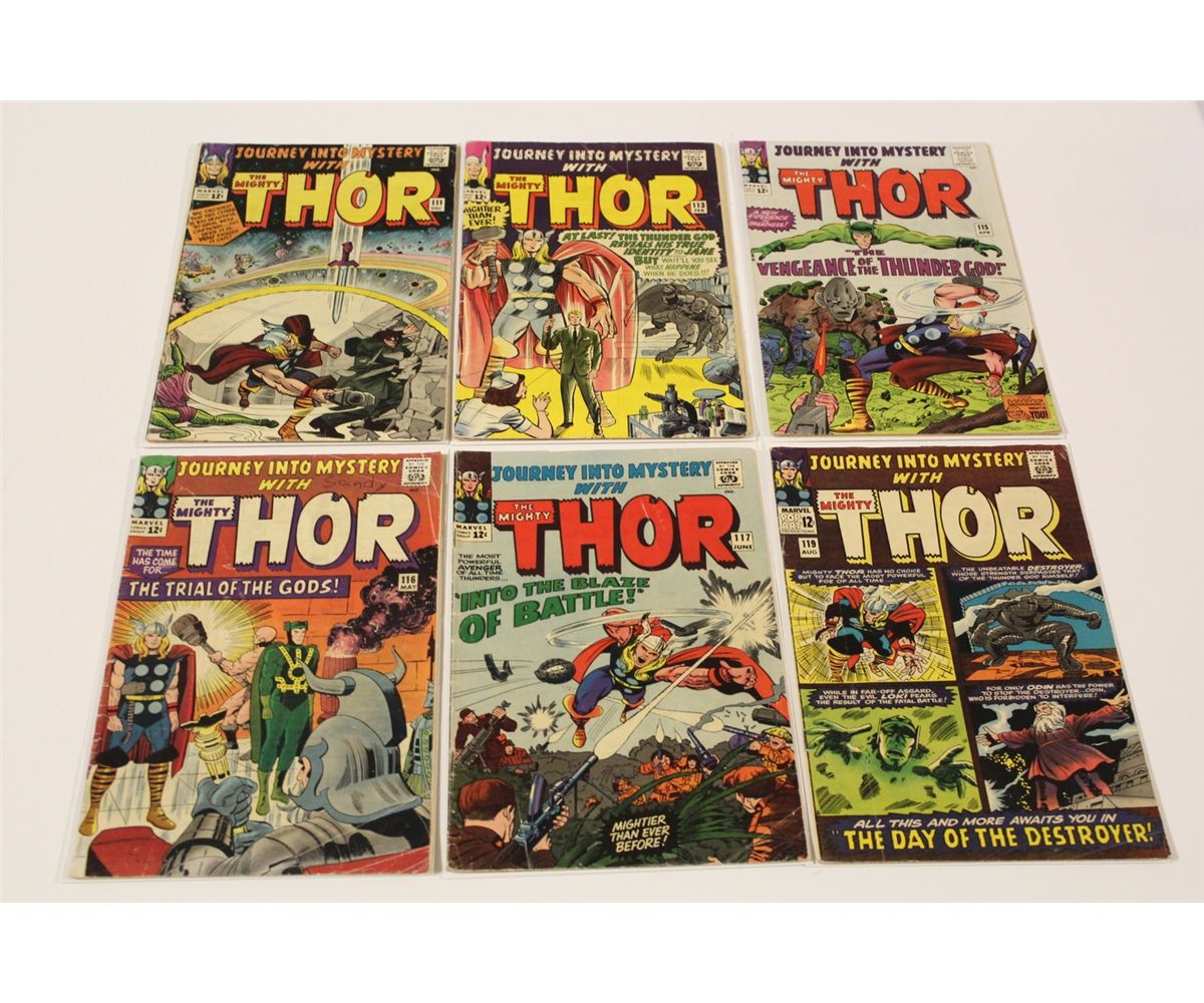 JOURNEY INTO MYSTERY #111, 113, 115, 116, 117 & 119 (1964-65) 6 EARLY THOR. #113 & 115 ORIGIN LOKI. LOWER MID TO MID GRADE AVERAGE. GLOSSY, TIGHT & SUPPLE. NICE TO VERY NICE BOOKS!