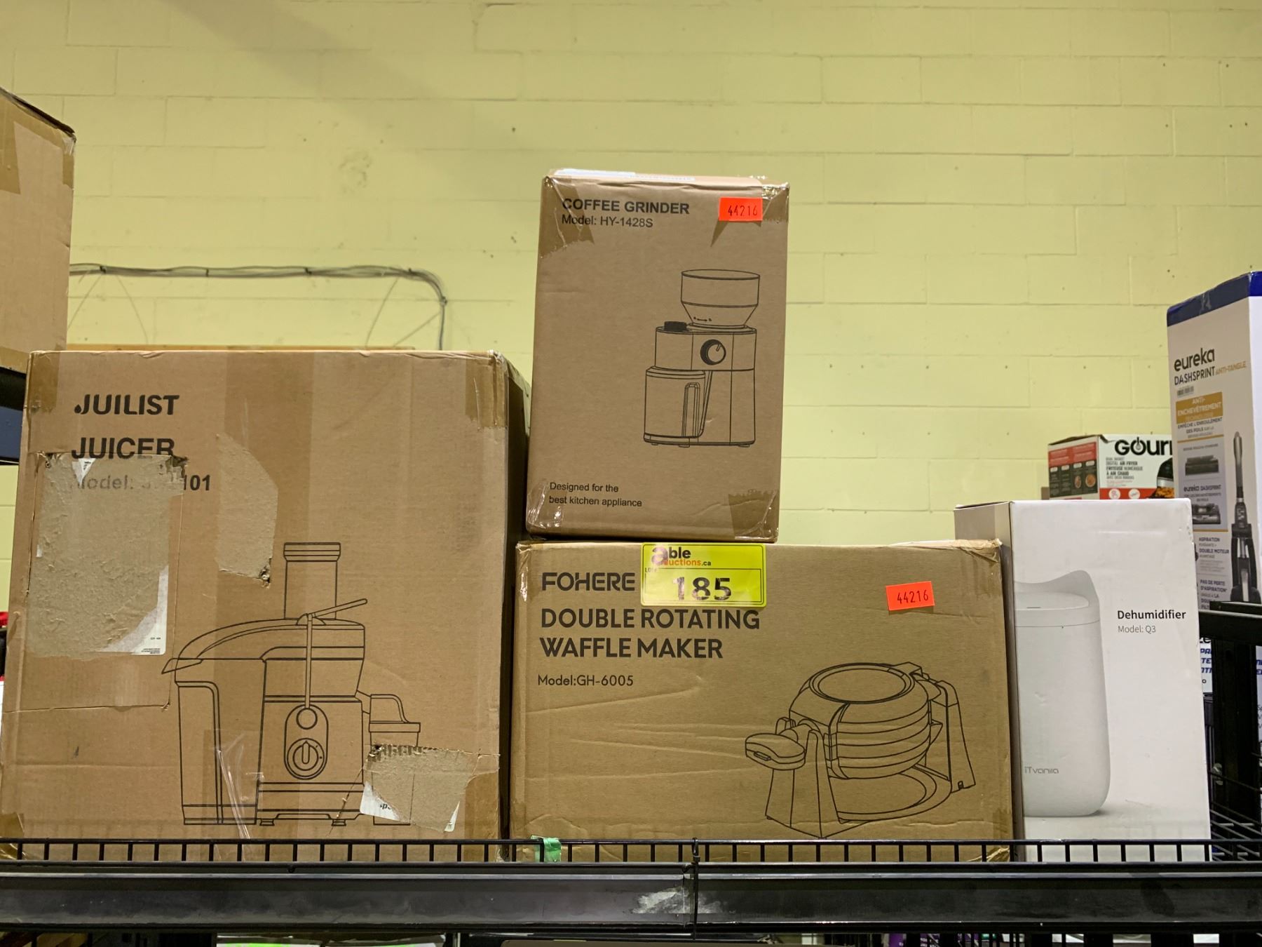 JUICER, COFFEE GRINDER, DOUBLE ROTATING WAFFLE MAKER & DEHUMIDIFIER