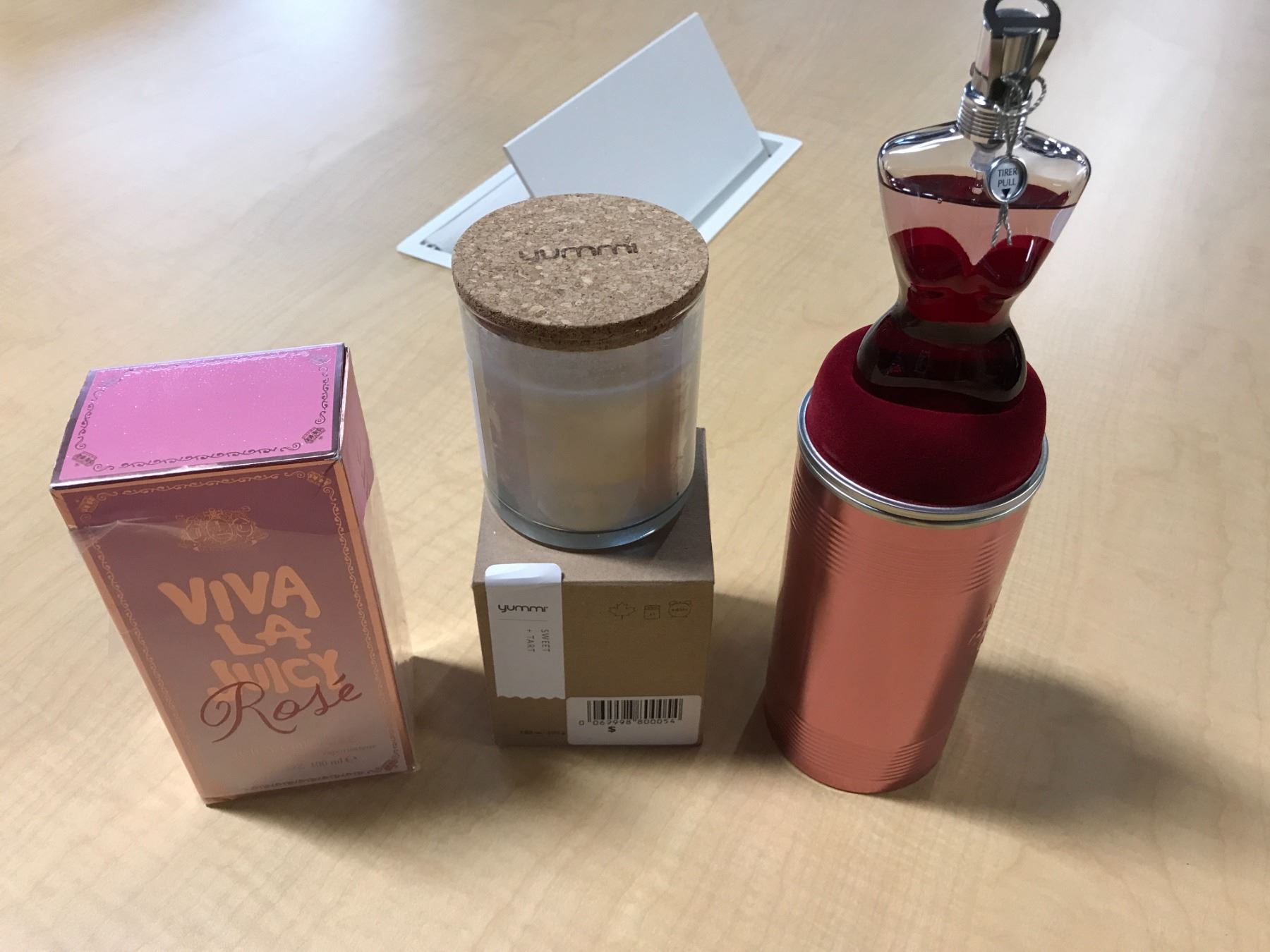 JUICY ROSE PERFUME, JEAN PAUL GAUTHIER PERFUME AND YUMMY CANDLE