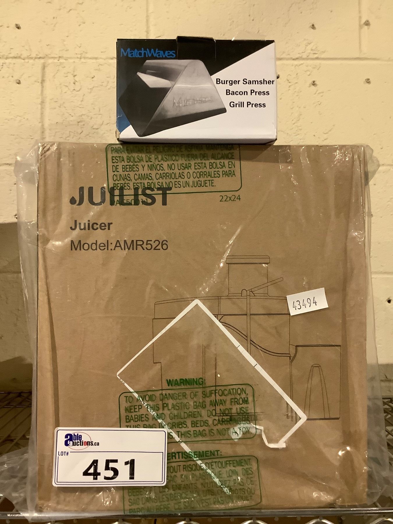 JUILIST JUICER MODEL AMR526AND MATCHWAVES GRILL PRESS