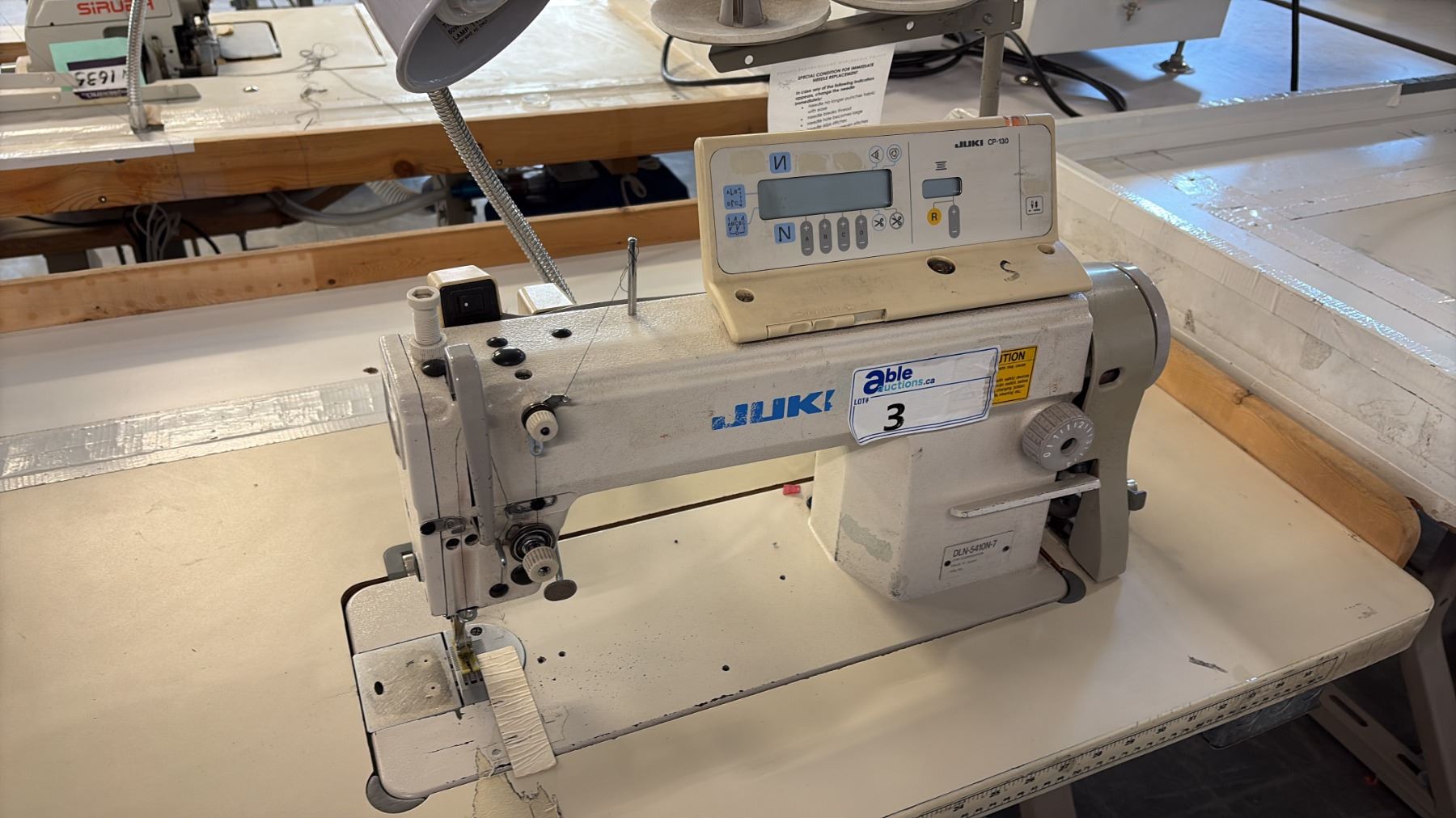 JUKI DLN-5410N-7 HIGH-SPEED, 1-NEEDLE, NEEDLE-FEED, LOCKSTITCH INDUSTRIAL SEWING STATION WITH CP-130 DIGITAL CONTROL PANEL