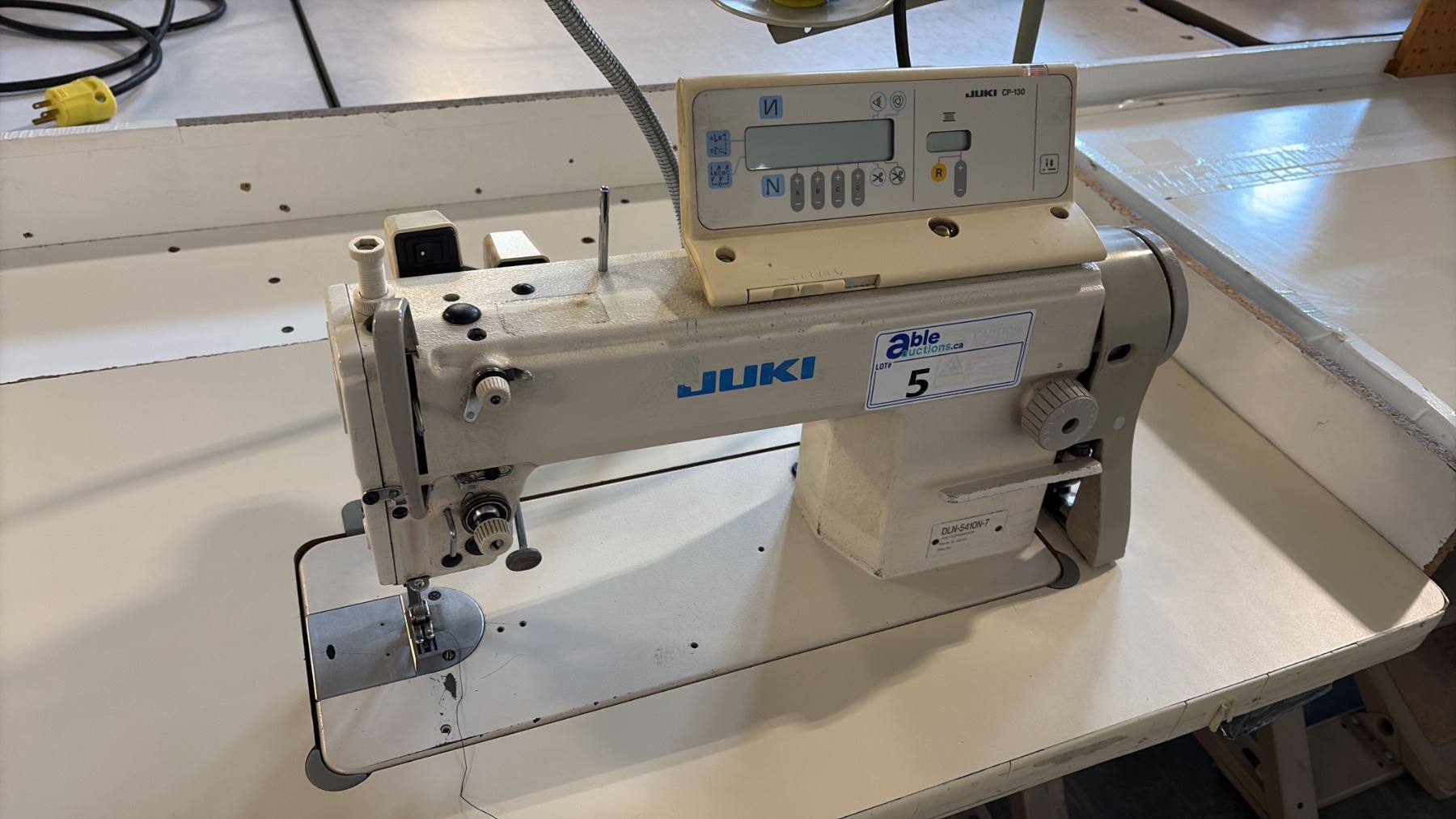 JUKI DLN-5410N-7 HIGH-SPEED, 1-NEEDLE, NEEDLE-FEED, LOCKSTITCH INDUSTRIAL SEWING STATION WITH CP-130 DIGITAL CONTROL PANEL