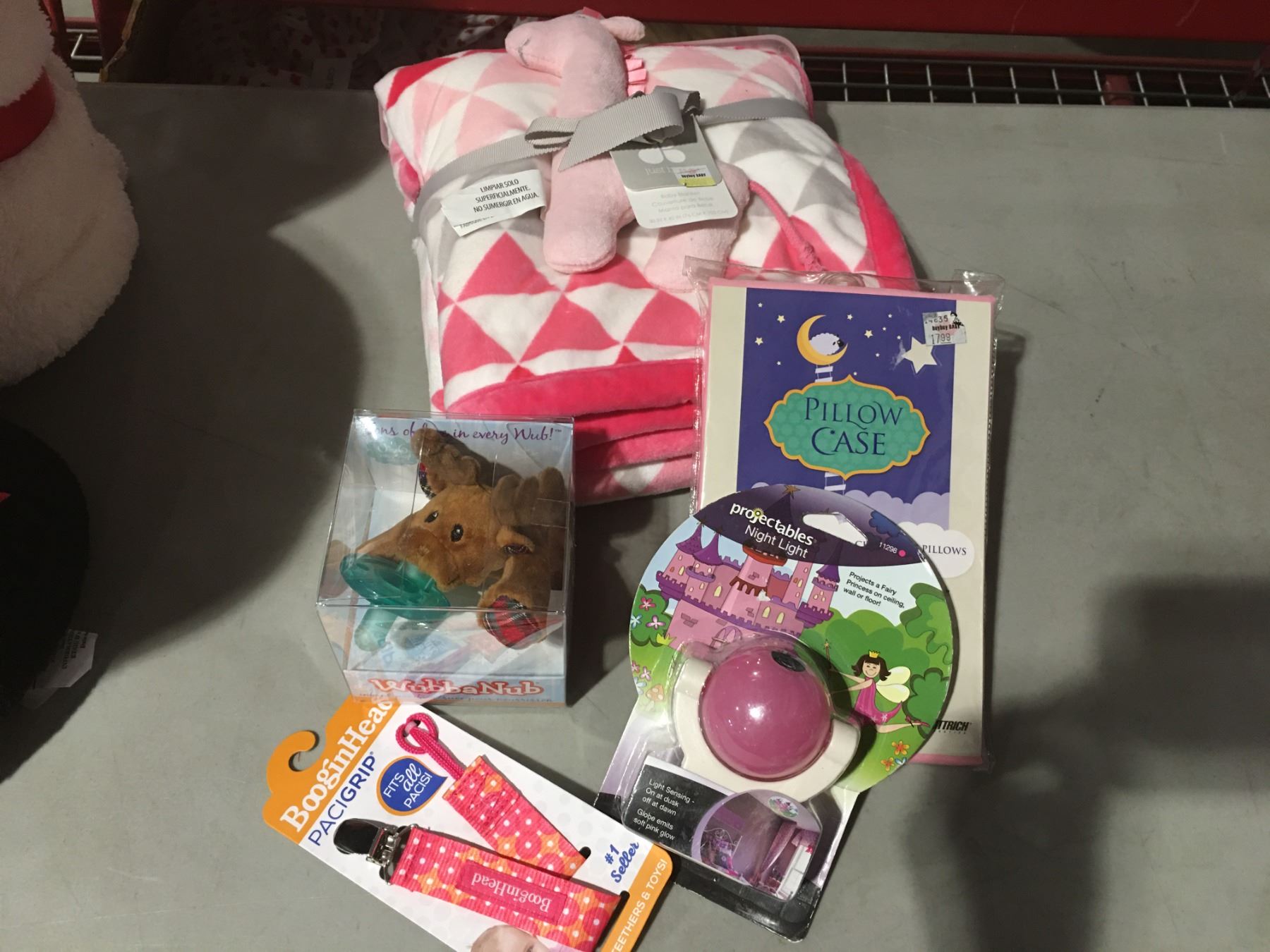 JUST BORN BABY BLANKET 30X40" PINK & WHITE, WUBBANUB INFANT PACIFIER, BOOGINHEAD PACIGRIP & PACK PILLOWCASE-SPECIALLY DESIGNED FOR CHILDRENS PILLOWS & PROJECTABLES NIGHT LIGHT - F