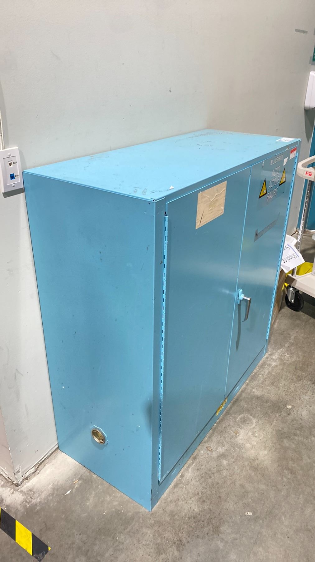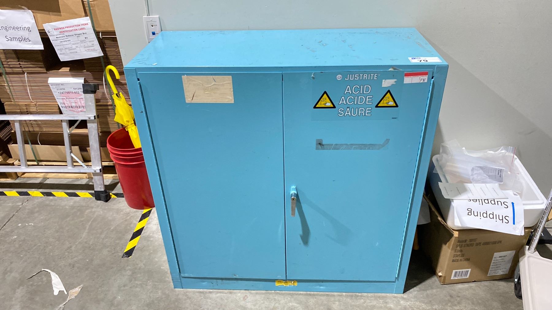 JUSTRITE METAL 2 DOOR HAZARDOUS GOODS CABINET APPROX 43 X 44.5 X 18" (CONTENTS NOT INCLUDED)