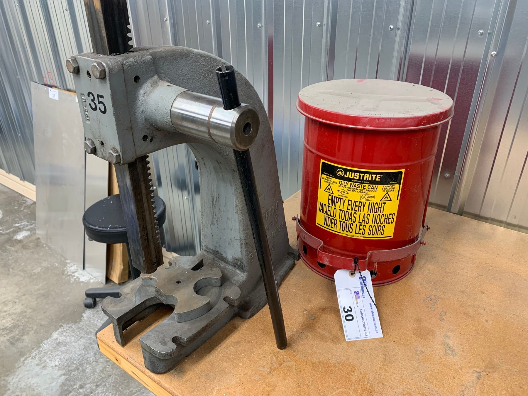 JUSTRITE OILY WASTE CAN & BUFFALO NO 3-12 3 TON PRESS