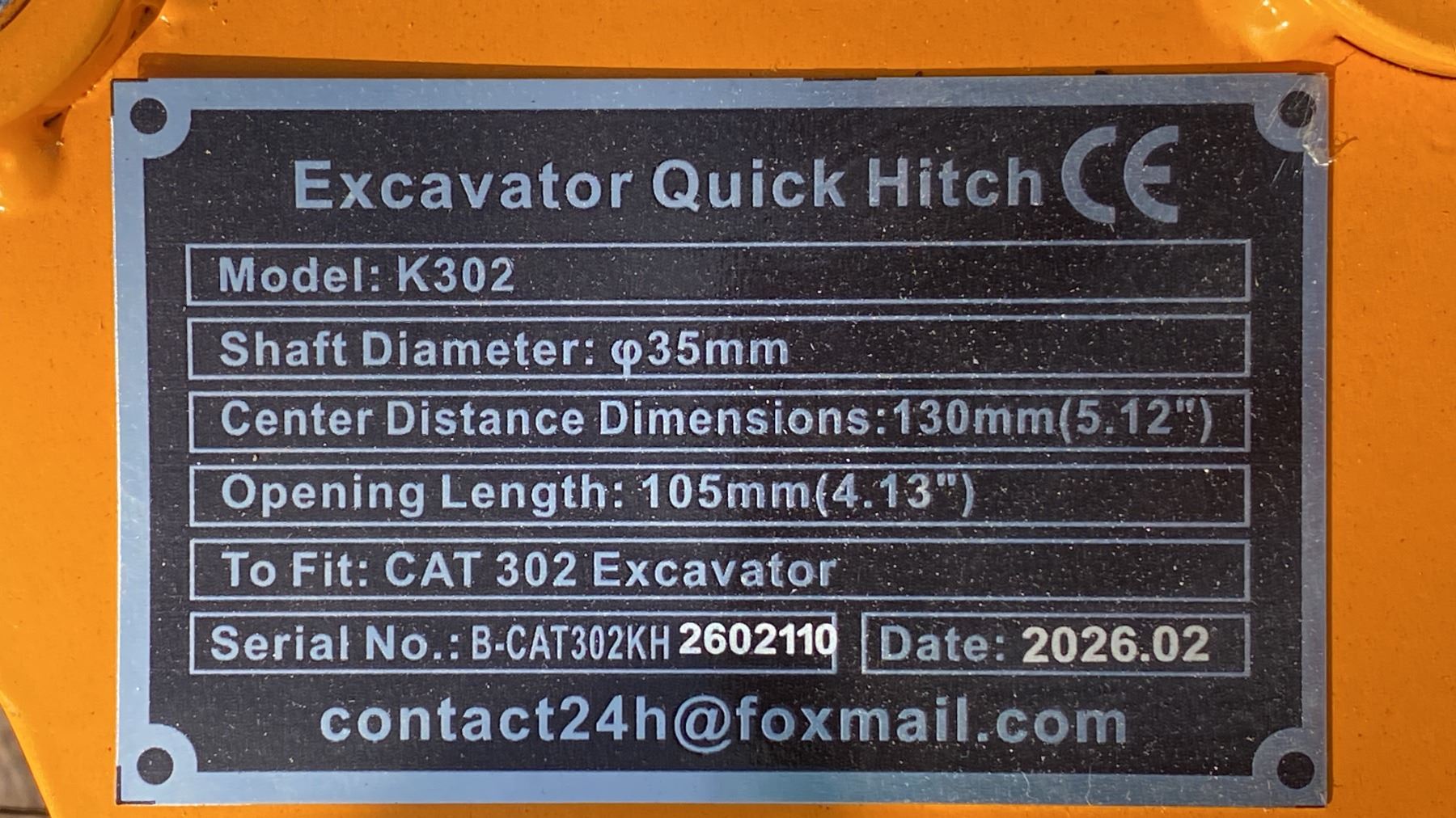 K302 EXCAVATOR QUICK HITCH EXCAVATOR ATTACHMENT FITS 302 EXCAVATORS