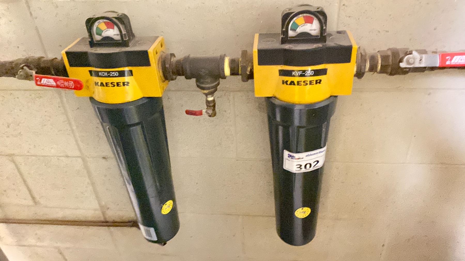 KAESER WATER SEPARATOR AND KAESER OIL SEPARATOR. KOX-250 AND KVF-250. MUST BE REMOVED FROM WALL *REQUIRES TECHNICIAN FOR REMOVAL & TOOLS*