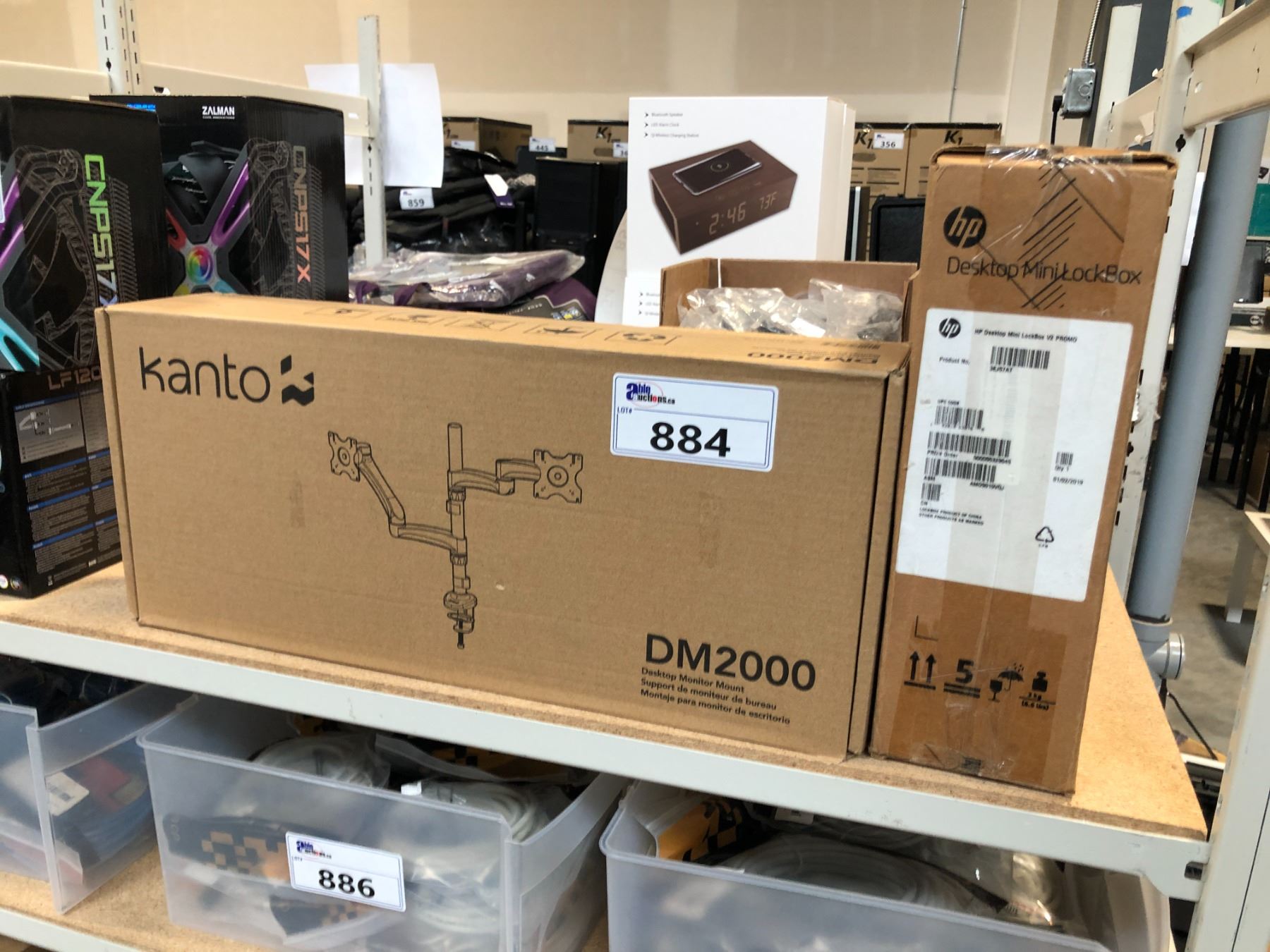 KANTO DM2000 DESK MOUNTED DUAL MONITOR ARM & HP MINI LOCKBOX