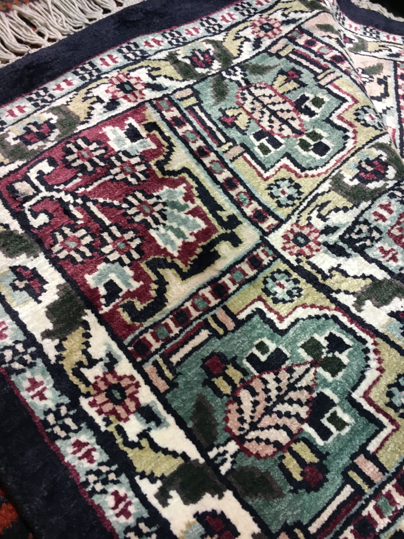 KASHMIR SILK 9'2" X 6' BLACK, BURGUNDY, GREEN HAND WOVEN PERSIAN AREA RUG GALLERY PRICE $4,900