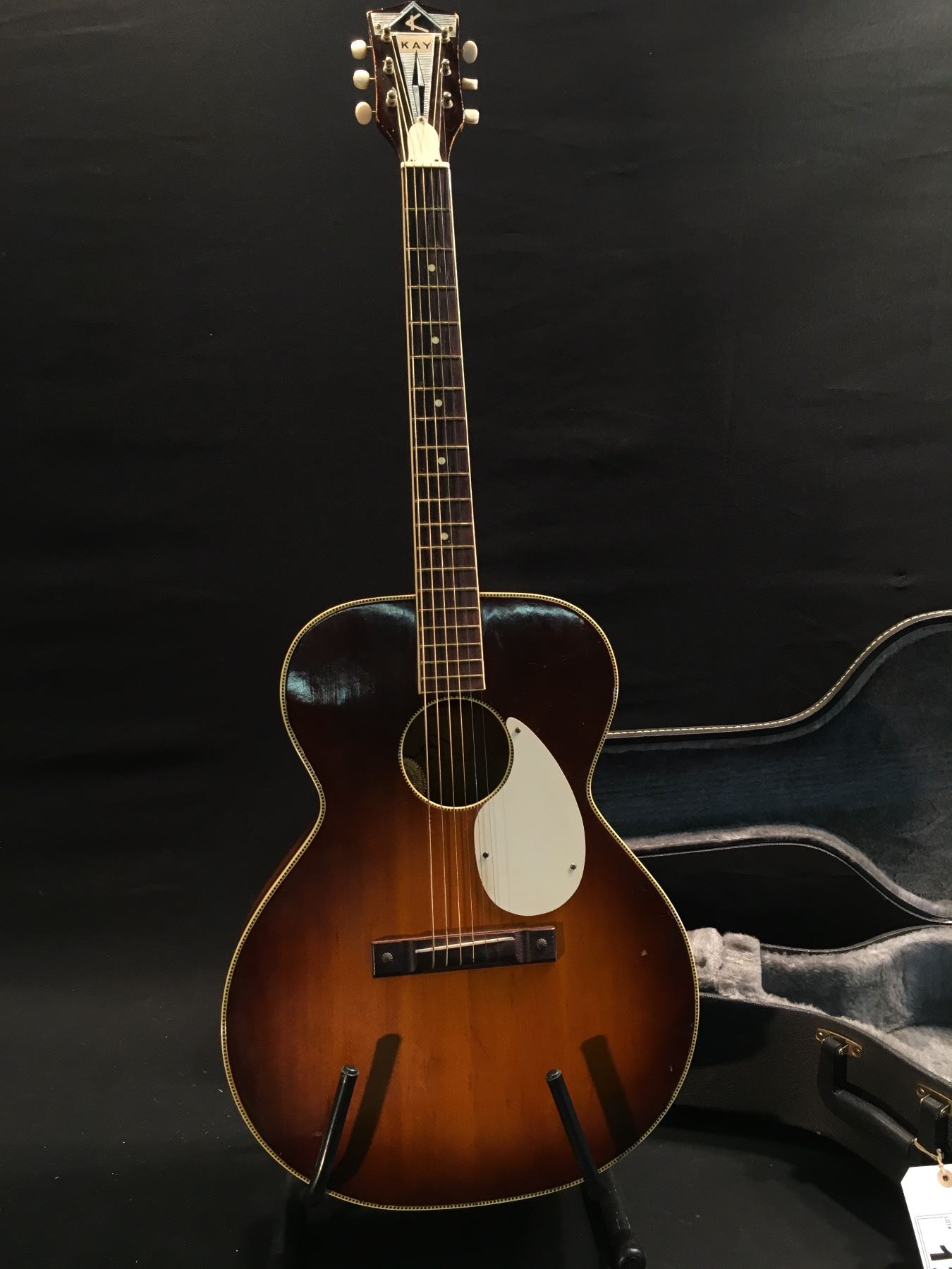 KAY N-1 ACOUSTIC GUITAR, MADE IN USA, LATE 1950S OR EARLY 60S, SERIAL NUMBER L 7174, V SHAPE NECK, ORIGINAL TIN LOGO, COMES WITH HARD SHELL CASE