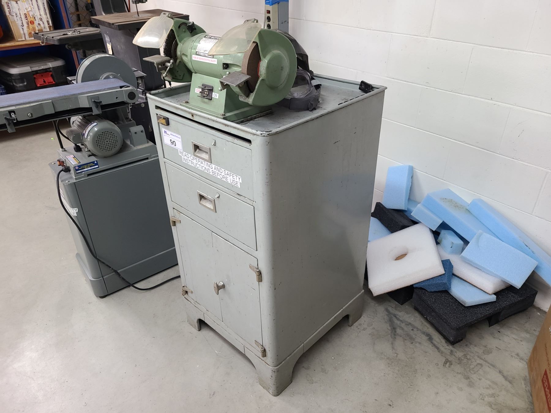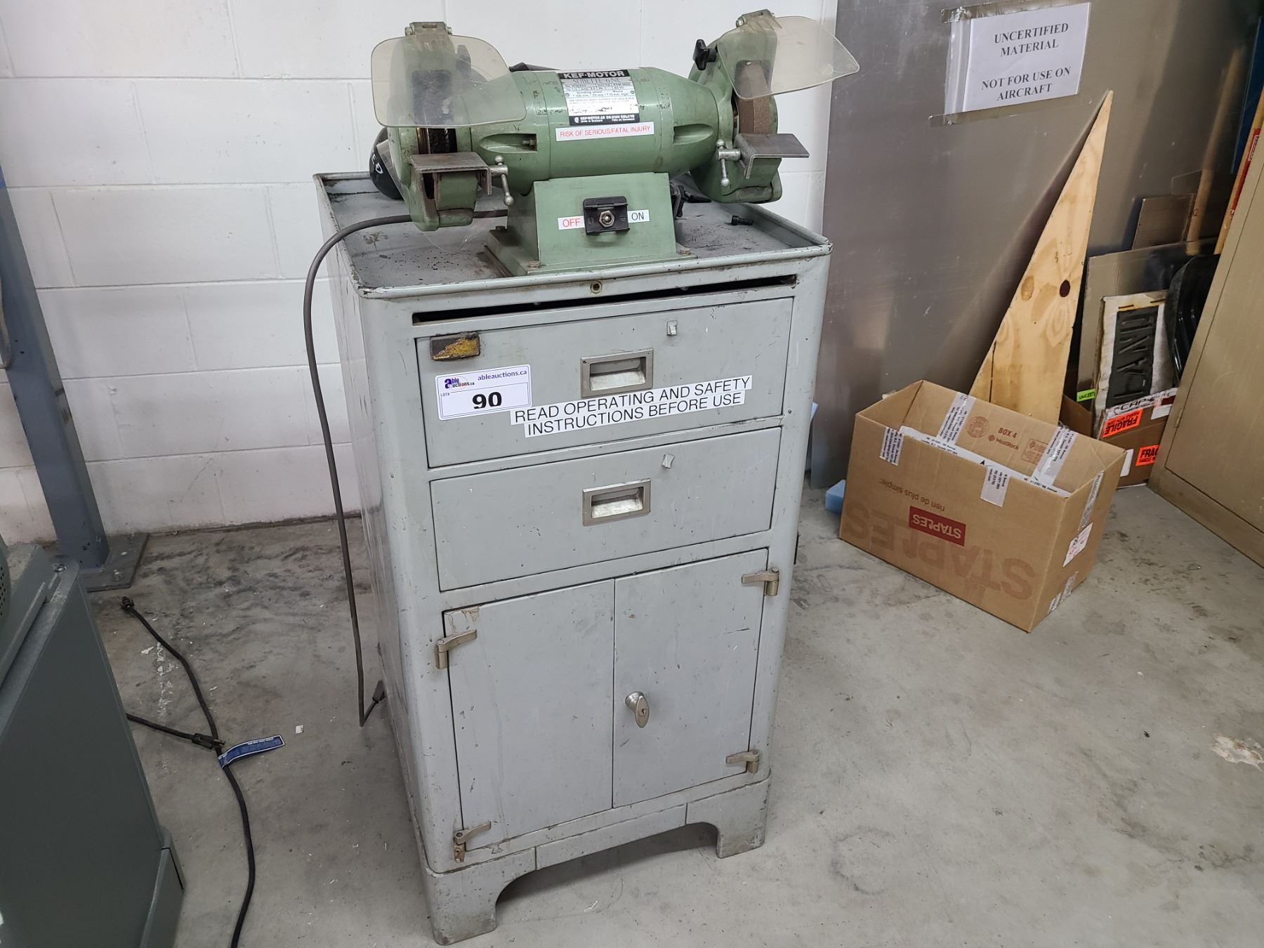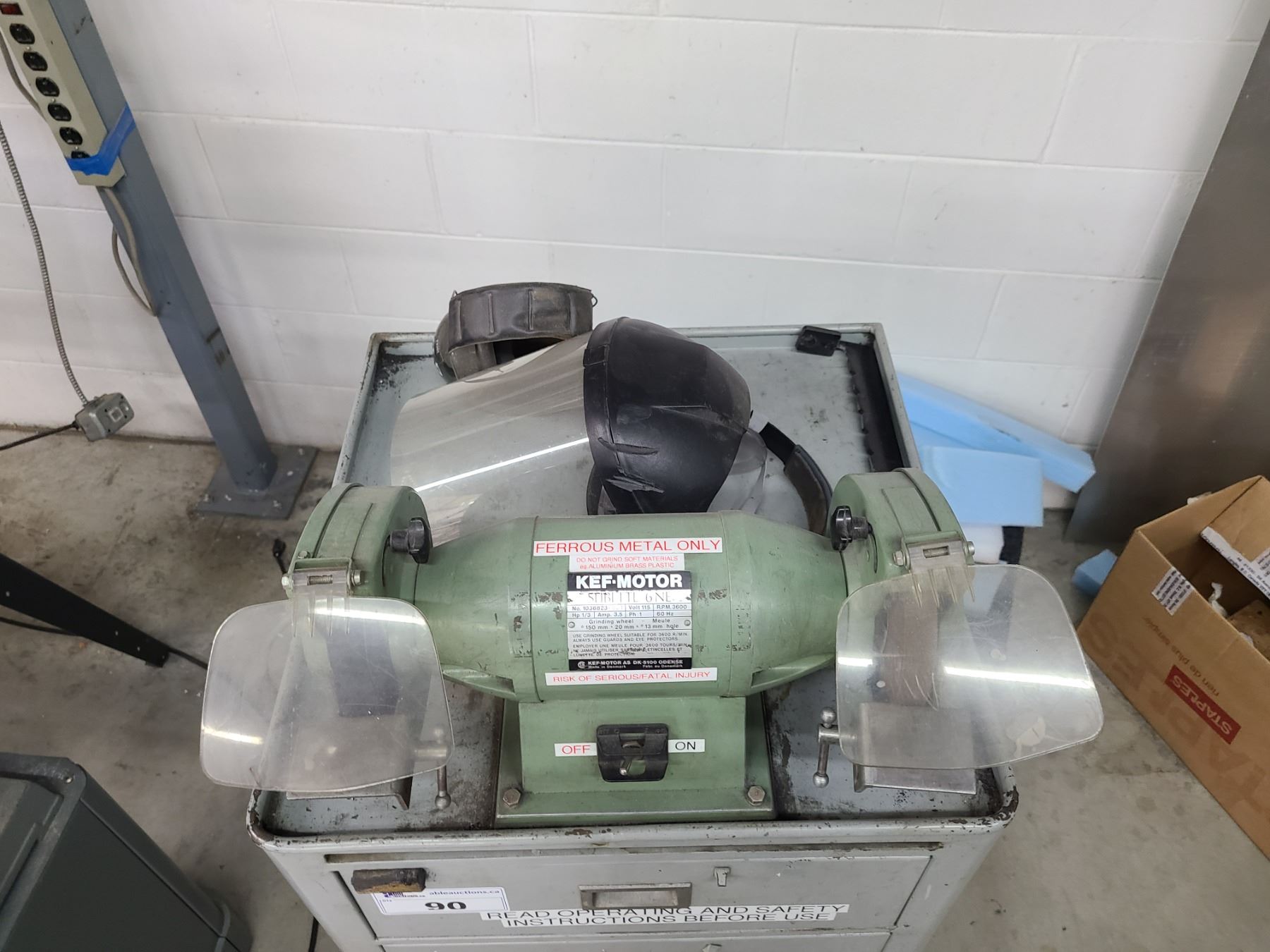 KEF-MOTOR SINGLE PHASE 1/3HP DUAL BENCH GRINDER ON STAND WITH CONTENTS
