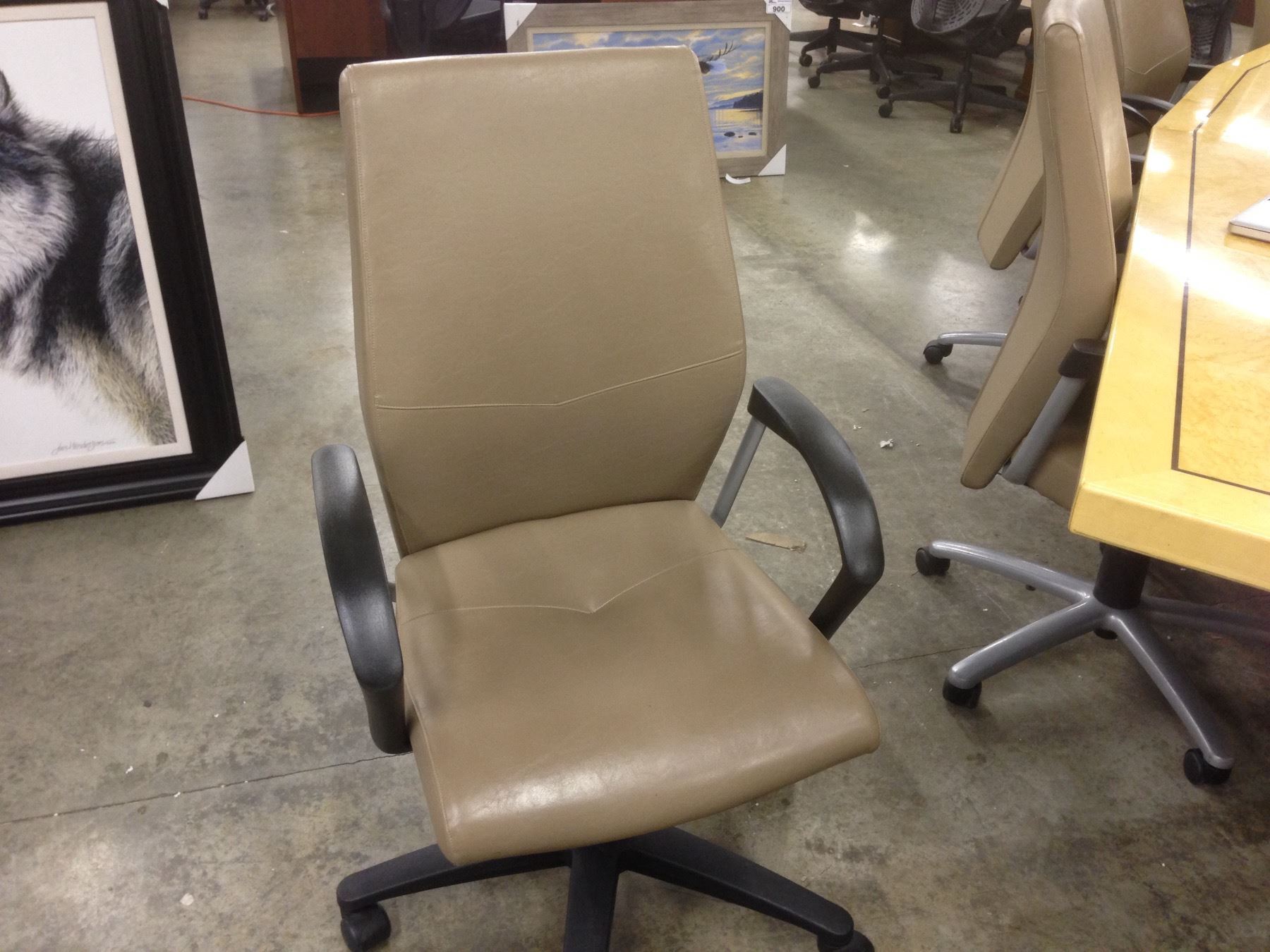 KEILHAUER SAND LEATHER ADJUSTABLE HIGH BACK ERGONOMIC MULTILEVER EXECUTIVE CHAIR