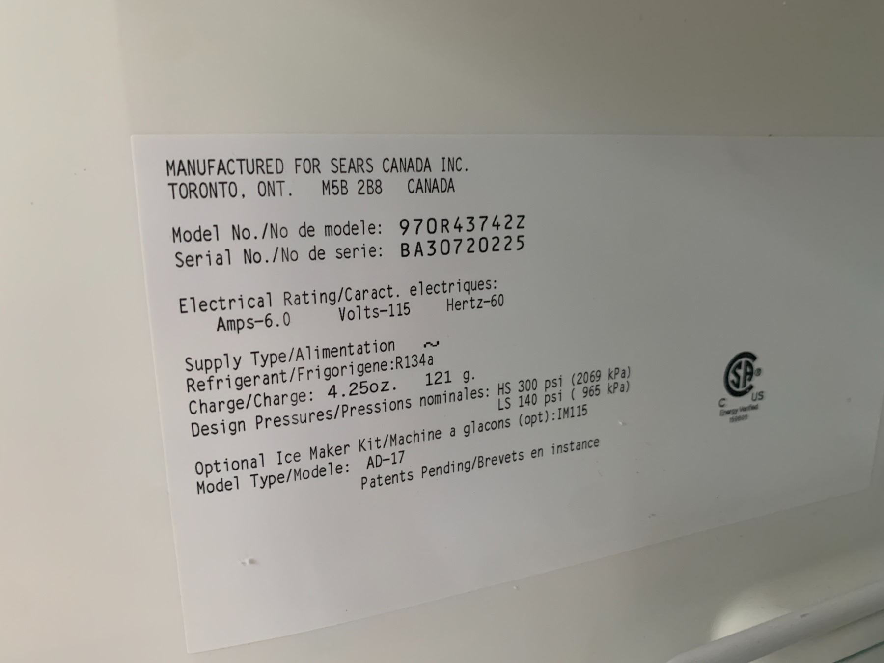 KENMORE 970R43742Z WHITE REFRIGERATOR