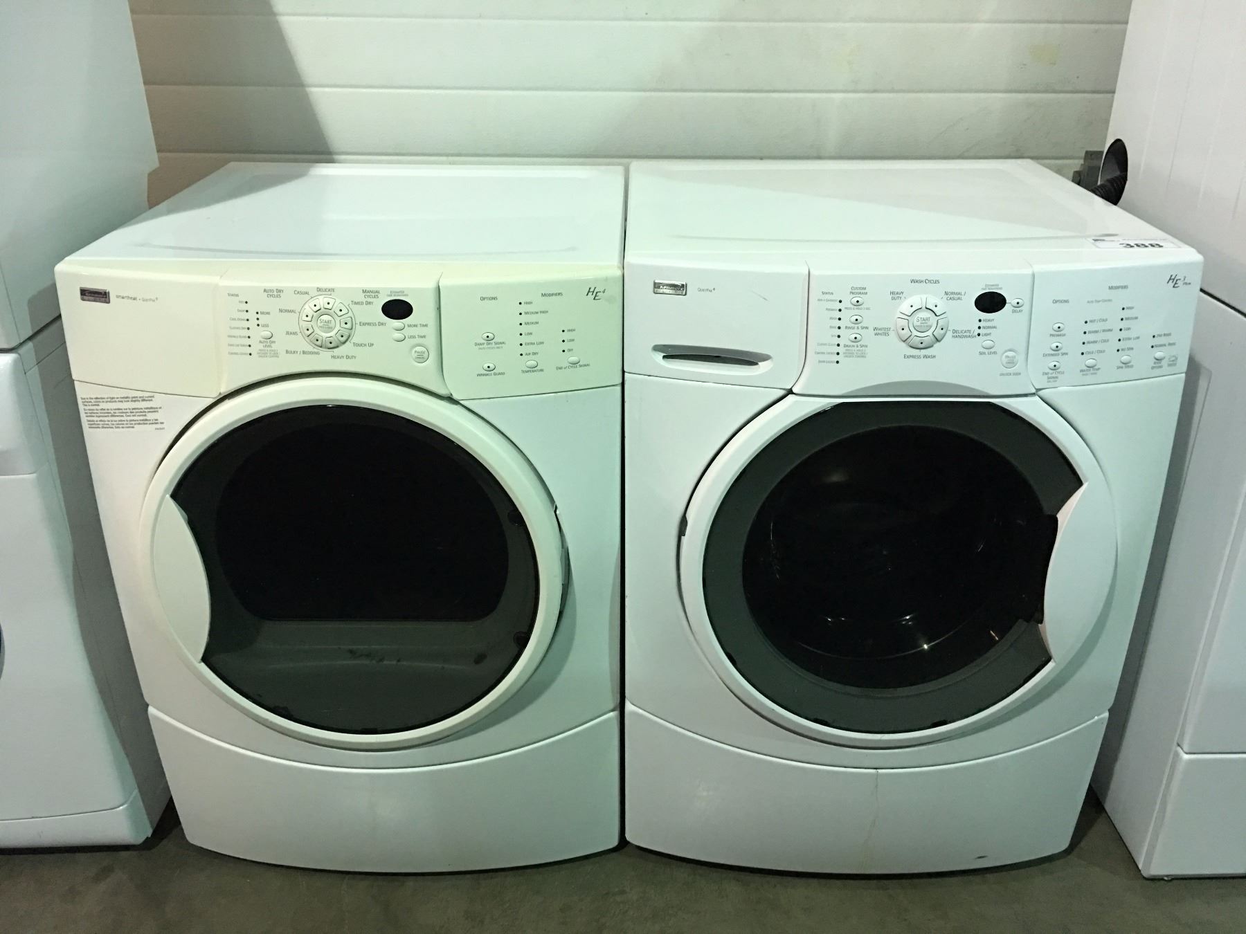 KENMORE ELITE WHITE FRONT LOAD WASHER & DRYER SET (MINOR SCRATCHES & DENTS MAY BE PRESENT) DISCOLOURATION TO DRYER
