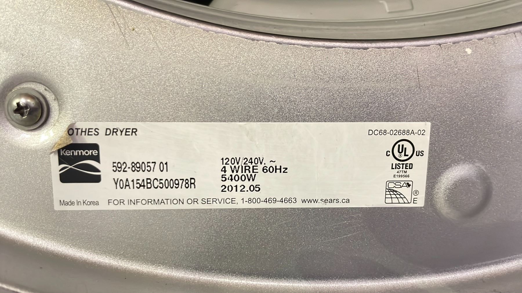 KENMORE FRONT LOAD DRYER
