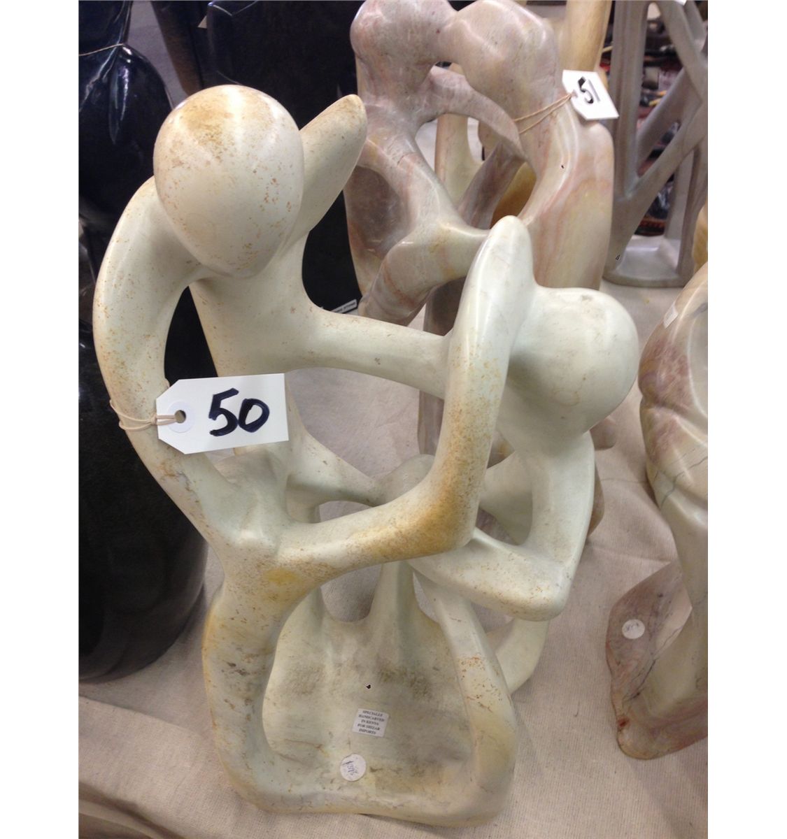 KENYA SOFT STONE, HAND CARVED ABSTRACT STATUE 20" TALL