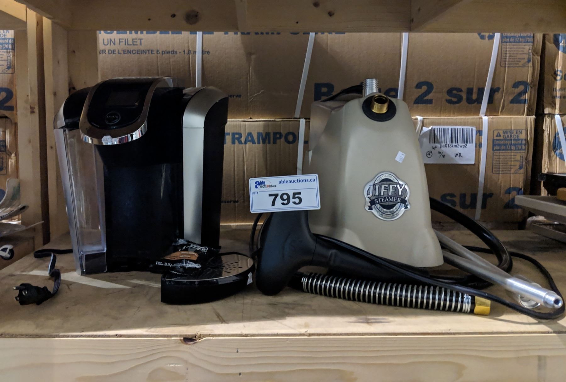 KEURIG COFFEE MAKER AND JIFFY STEAMER