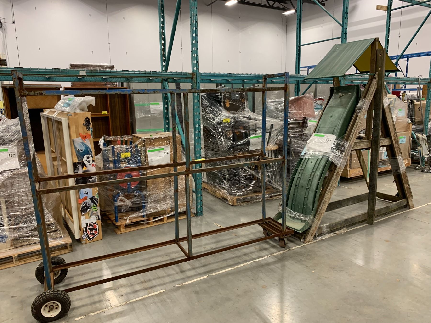 KIDS OUTDOOR PLAY SET AND LARGE METAL ROLLING CART