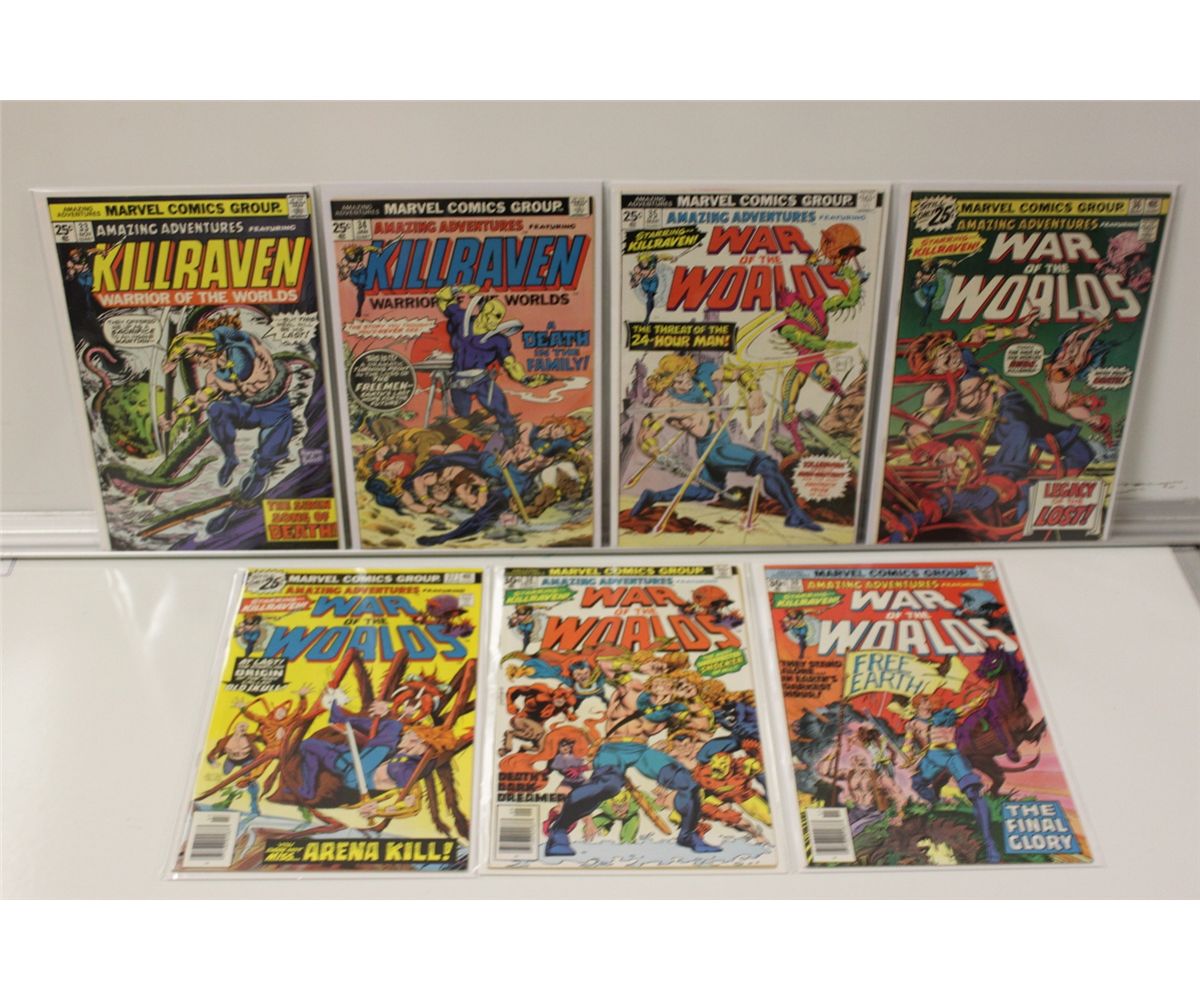 KILLRAVEN COMPLETE AMAZING ADVENTURES SET. #18 (1ST APPEARANCE KILLRAVEN)-39 (LAST ISSUE). FULL BRONZE RUN (1973-76). NICE, SHARP & SUPPLE COPIES. MID TO HIGH GRADE.