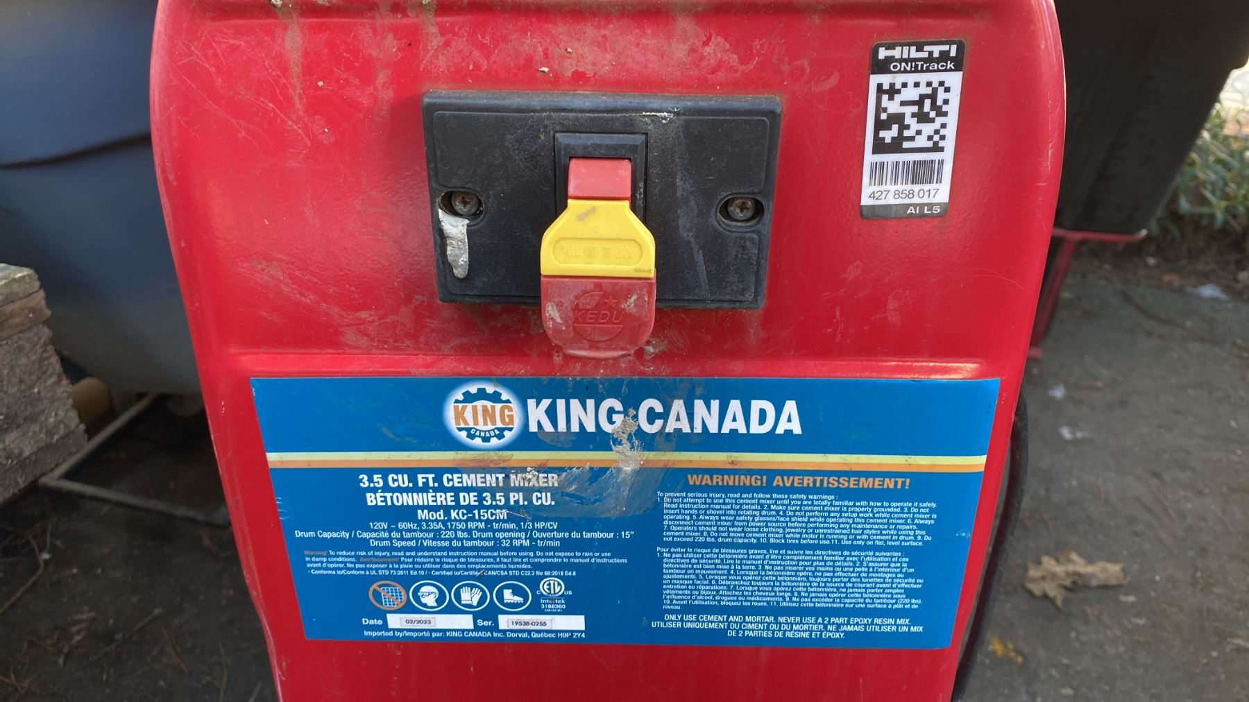 KING CANADA KC-15CM 3.5 CU FT RED INDUSTRIAL ELECTRIC MOBILE CEMENT MIXER