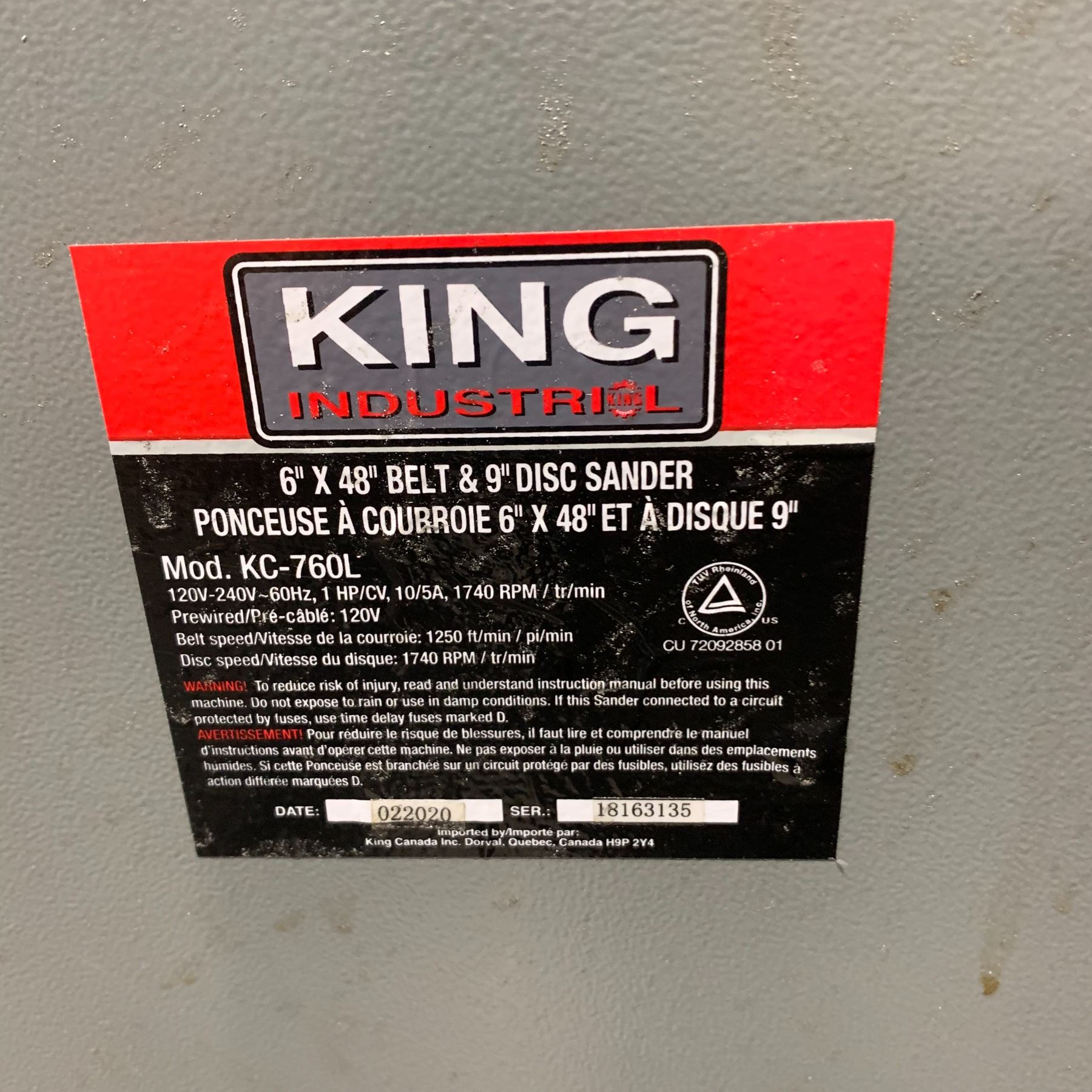 KING INDUSTRIAL MODEL KC -760L 6" X 48" COMBINATION BELT & 9" DISC SANDER