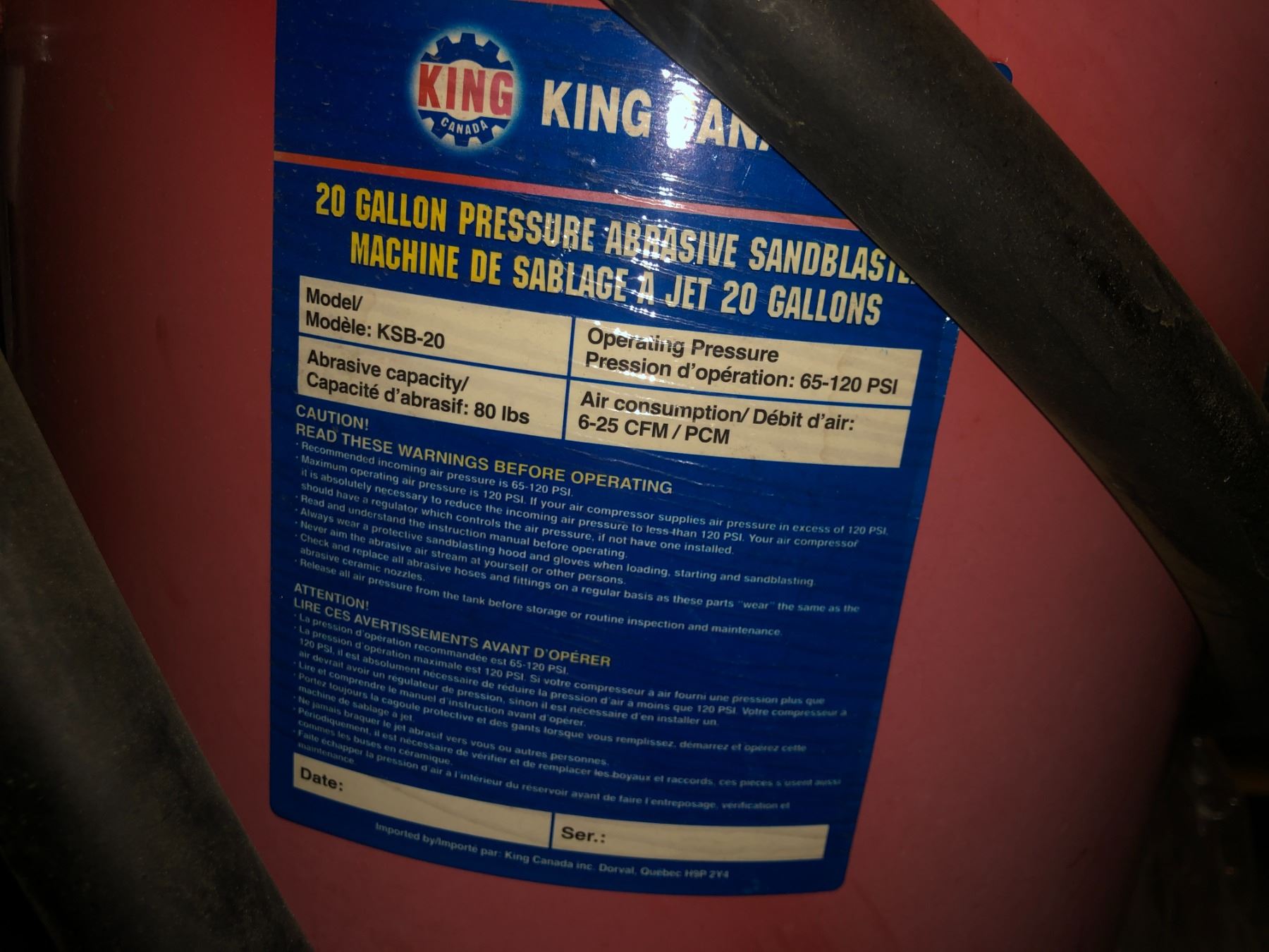 KING MODEL KSB-20 SAND BLASTER WITH MEDIA AND GUN