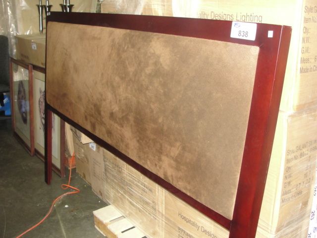KING SIZE MAHOGANY FINISH WITH BROWN LEATHER PADDED BACK HEADBOARD