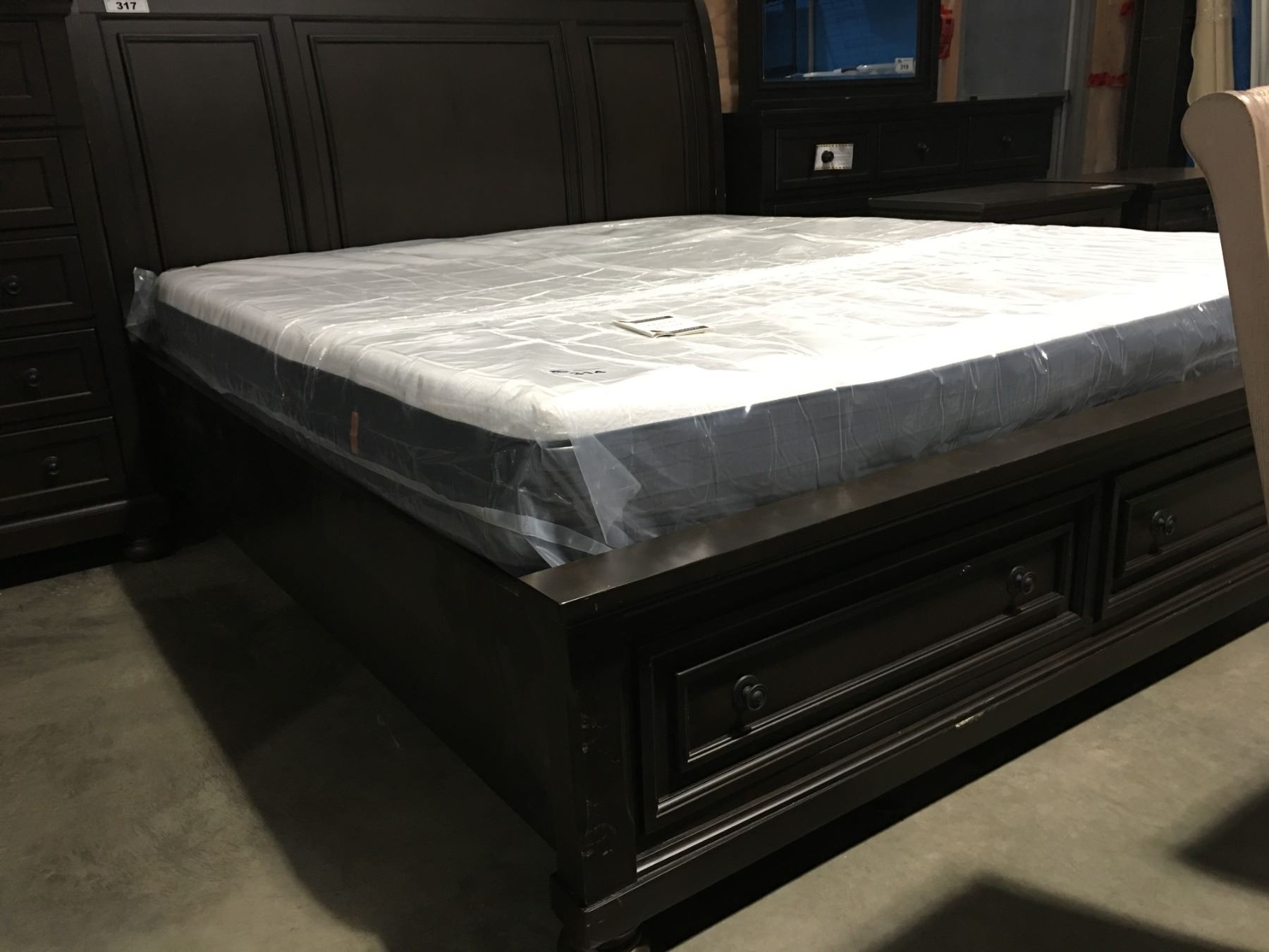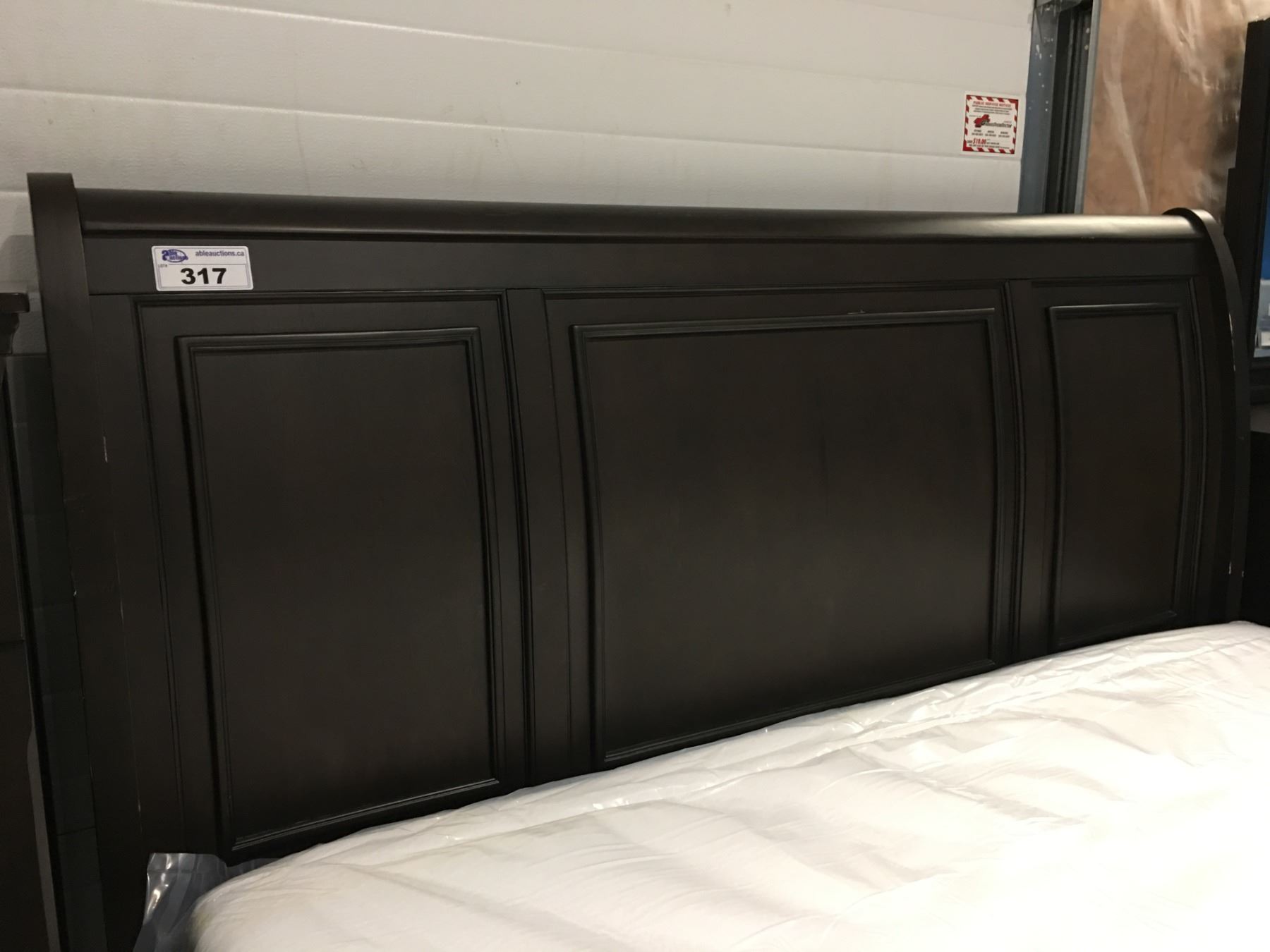 KINGSIZE DARK WOOD BED FRAME WITH DRAWERS (HEADBOARD/FOOTBOARD & RAILS) - SOME SCUFFS PRESENT
