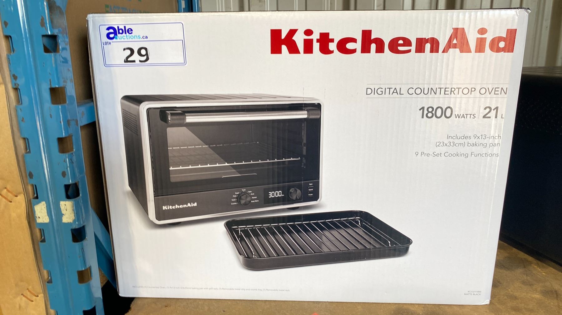 KITCHENAID 1800 WATT 21 LITER DIGITAL ELECTRIC COUNTERTOP GLASS FRONT OVEN *IN BOX, COLOR BLACK*