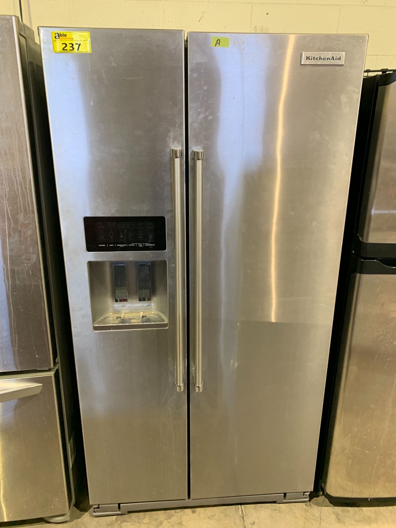 KITCHENAID STAINLESS STEEL SIDE BY SIDE FRIDGE WITH ICE AND WATER