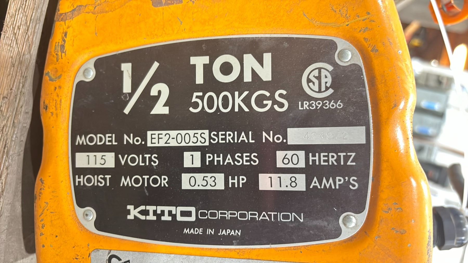 KITTO CORP 1/2 TONNE EF2-005S OVERHEAD CRANE HOIST WITH CONTROL
