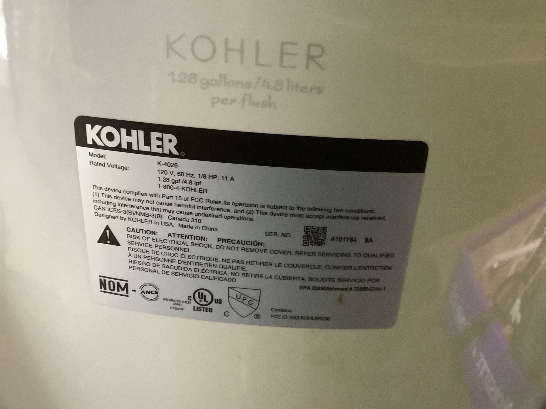 KOHLER KARING SMART TOILET (MAY BE MISSING PIECES)