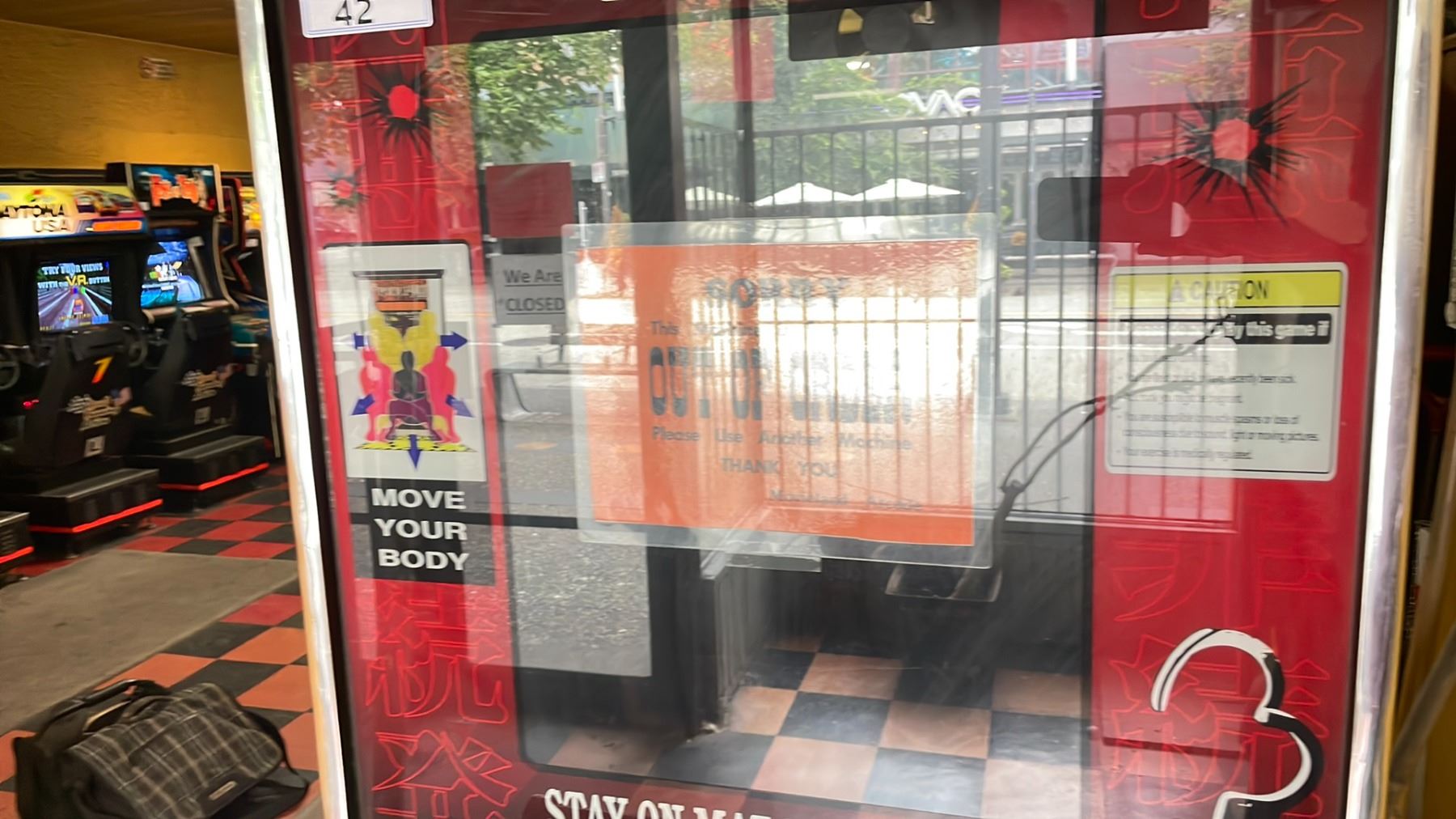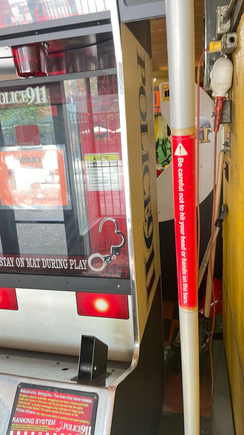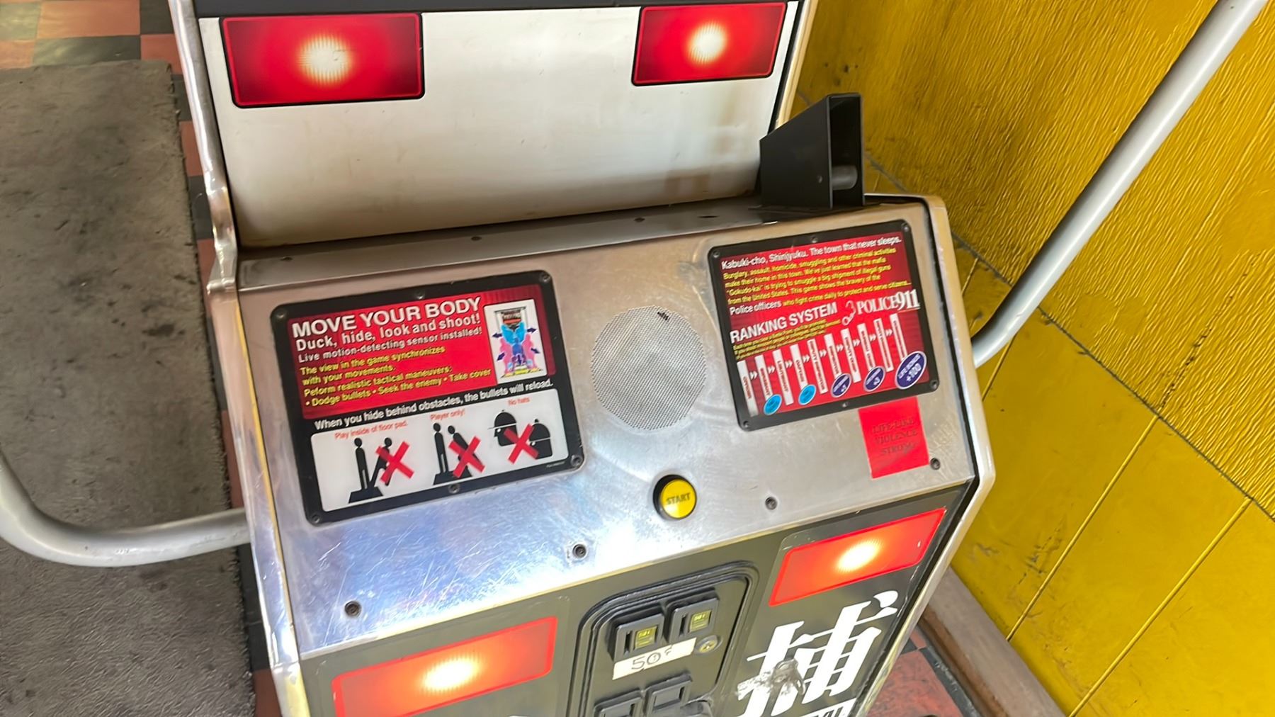 KONAMI POLICE 911 SINGLE PERSON COIN OPERATED UPRIGHT SHOOTER ARCADE GAME IN STOCK CABINET WITH MANUALS *OUT OF ORDER, MISSING GUN, NEEDS REPAIRS*