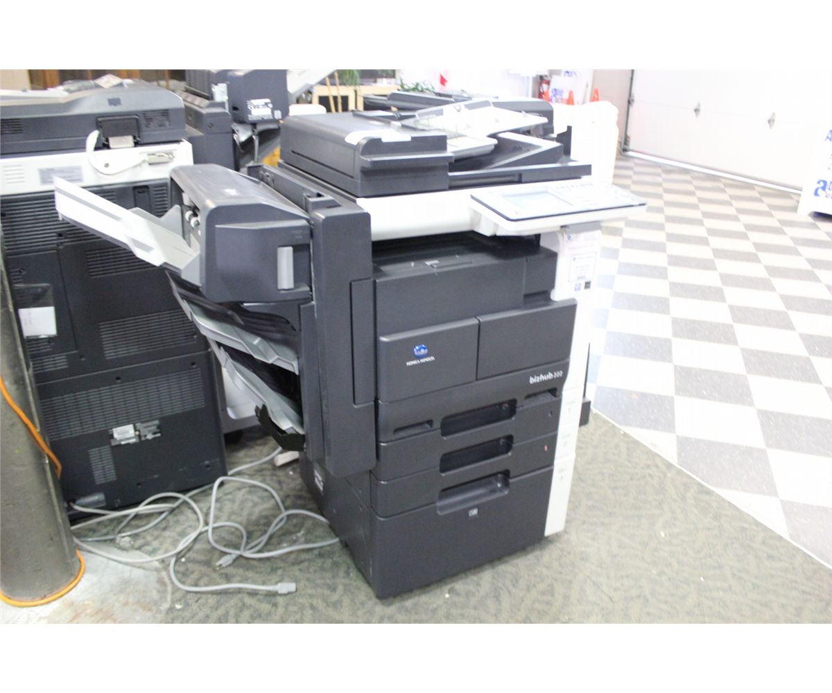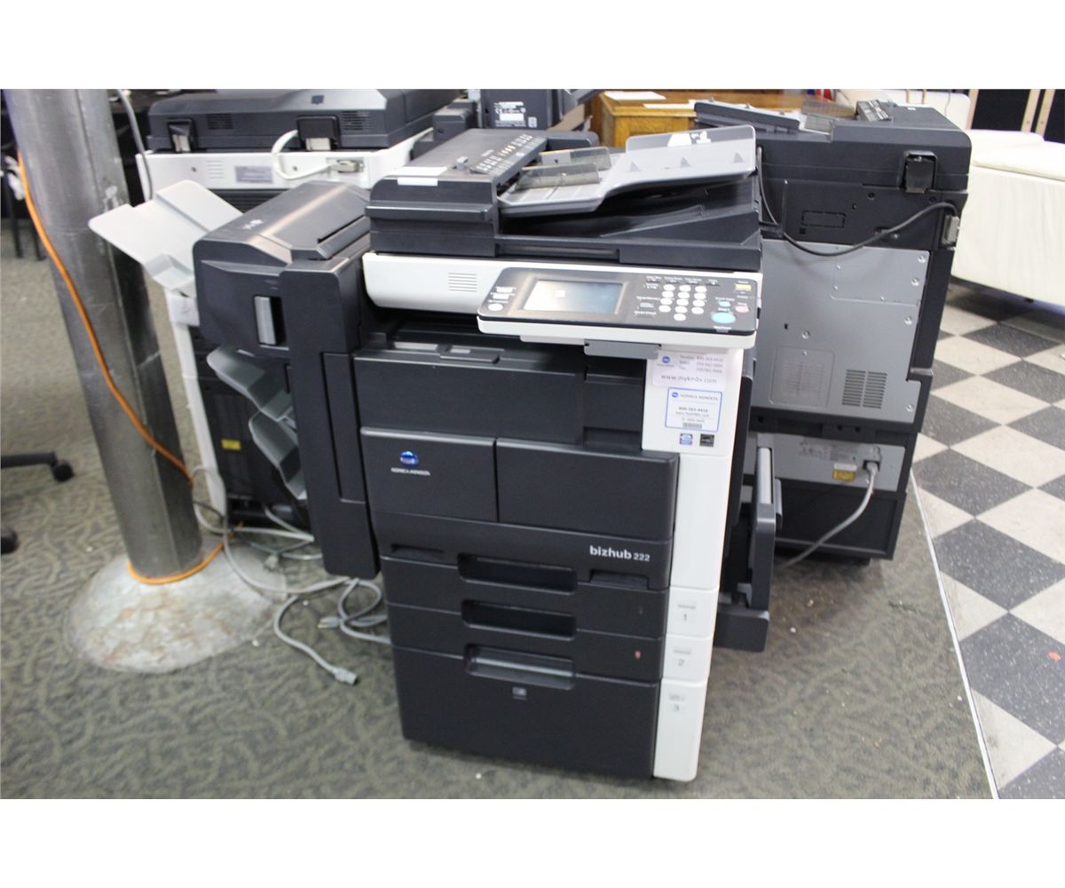 KONICA MINOLTA BIZHUB 222 DIGITAL MULTIFUNCTION COPIER WITH PROGRAMMABLE TOUCH SCREEN AND MULTI STACK FINISHER