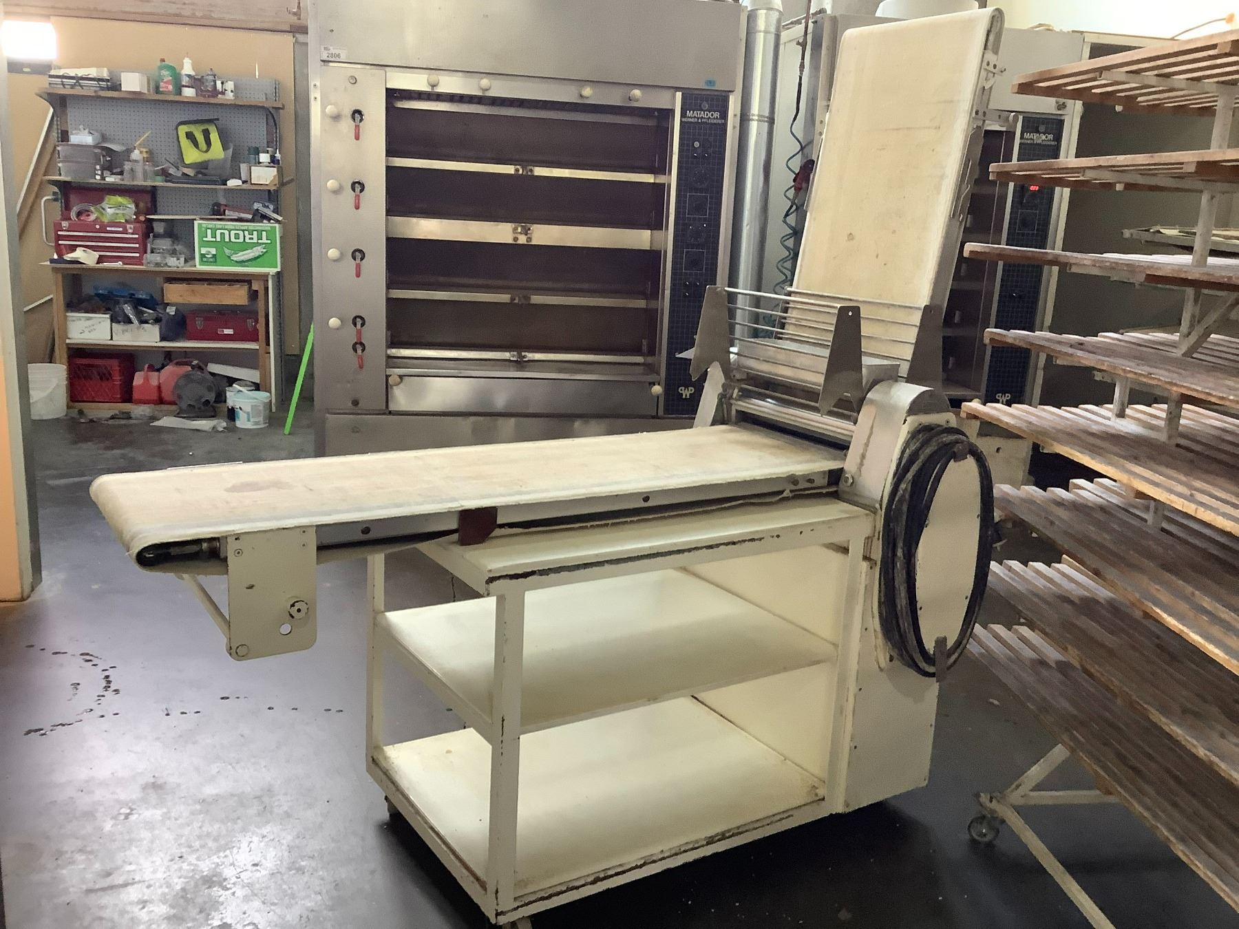 KONSTRUKTIONS-WERKSTAFFE ADJUSTABLE PASTRY SHEETER WITH MOBILE CART