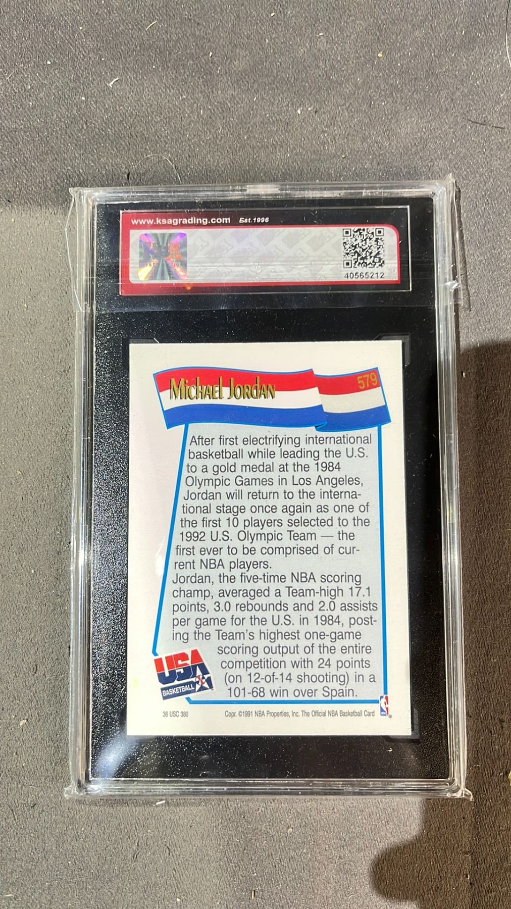 KSA 7.5 1991-92 NBA HOOPS #579 MICHAEL JORDAN USA BASKETBALL CARD