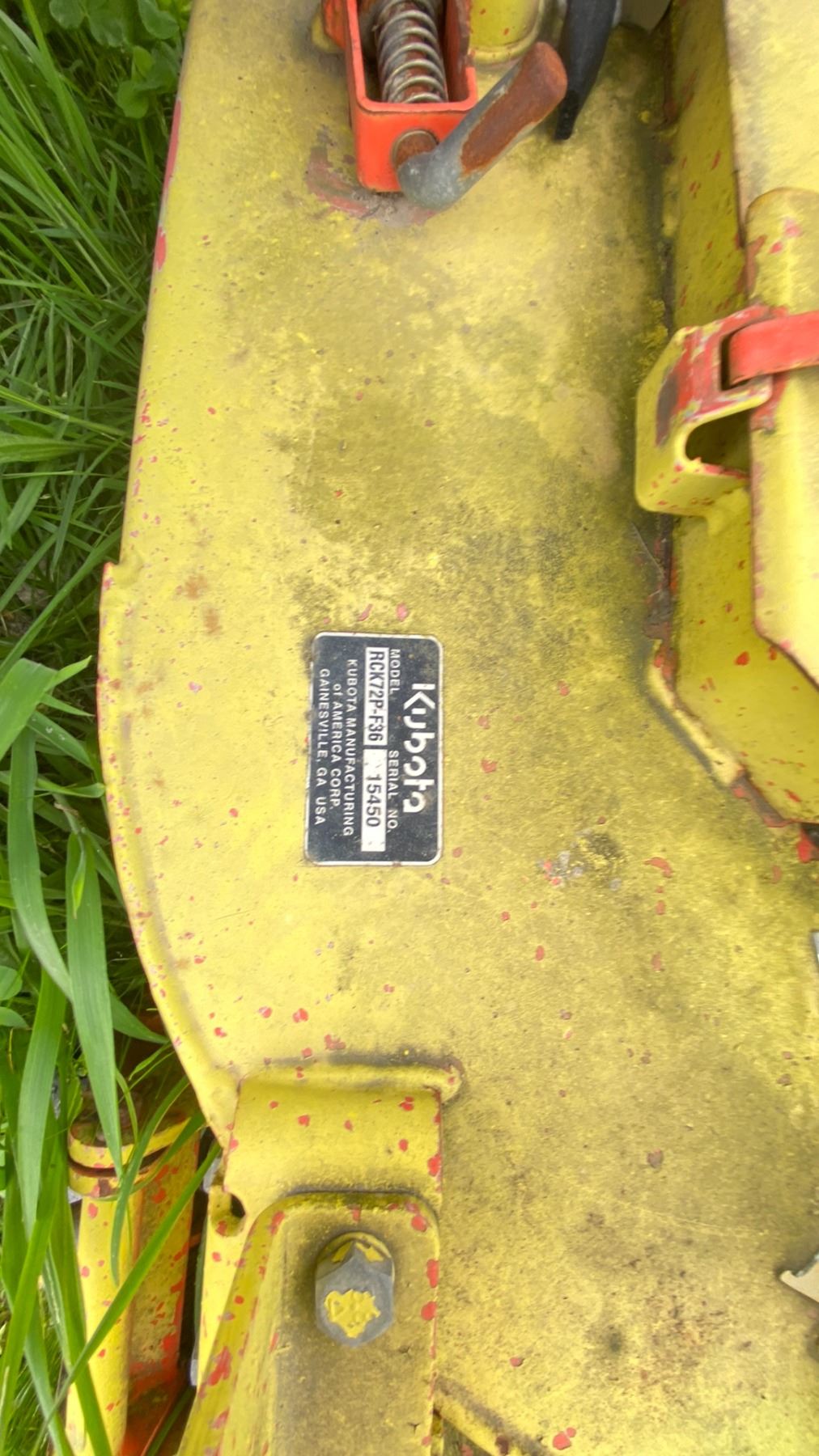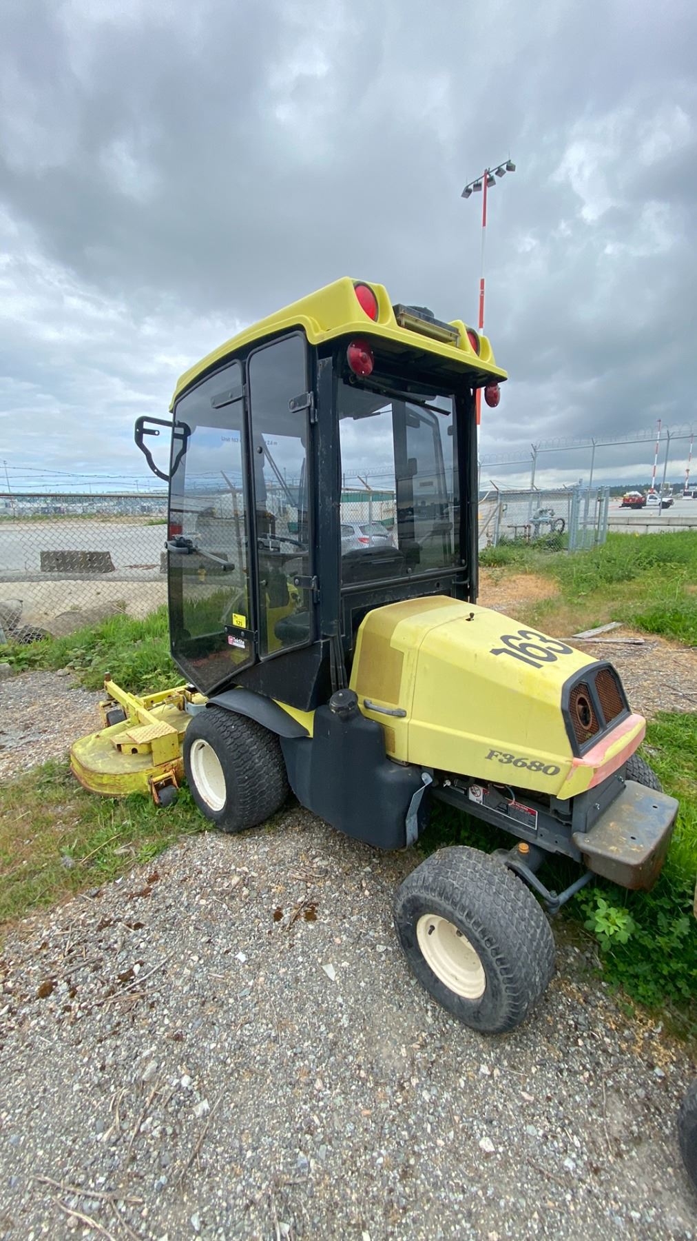 KUBOTA MODEL F3680 FRONT MOWER, HOUR METER READS 1937 (HOURS NOT VERIFIED), YELLOW, ENCLOSED CAB, RUNS, WITH KUBOTA RCK72P-F36 MOWER ATTACHMENT *LOCATED OFFSITE/RICHMOND, THU MAY 29 & FRI MAY 30 PICKUP ONLY