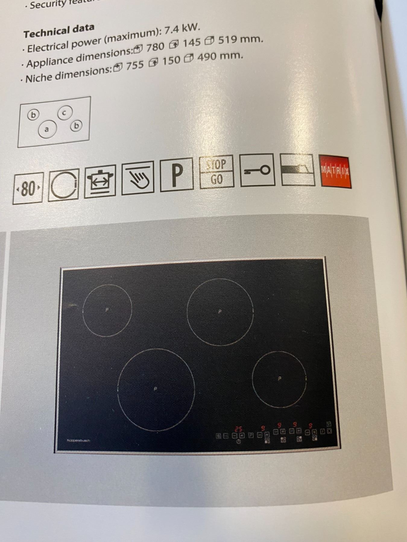 KUPPERSBUSCH EKI8072MUL INDUCTION COOKTOP WITH STAINLESS STEEL TRIM APPROX 30.5"L X 20.5"W X 5.75"D