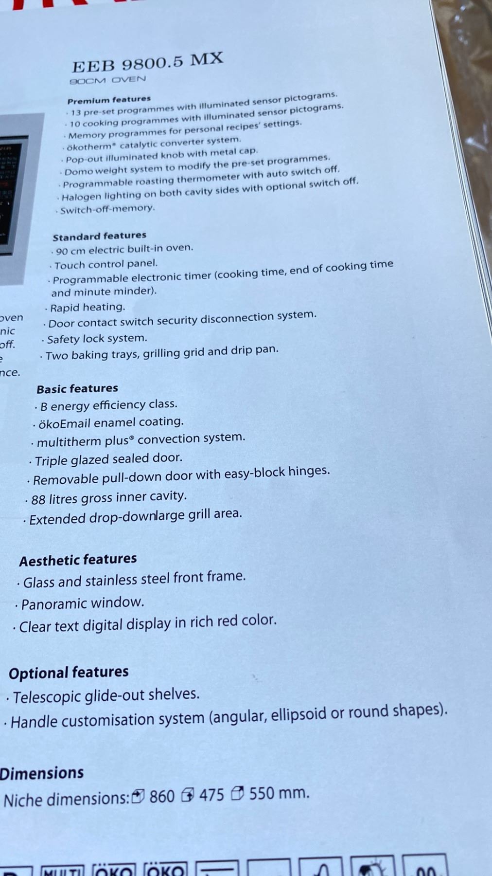 KUPPERSBUSCH ELECTRIC WALL OVEN, MODEL EEB98000M, WITH EUROPEAN CONVECTION & OKOTHERM 35"W X 21"D X 19"H