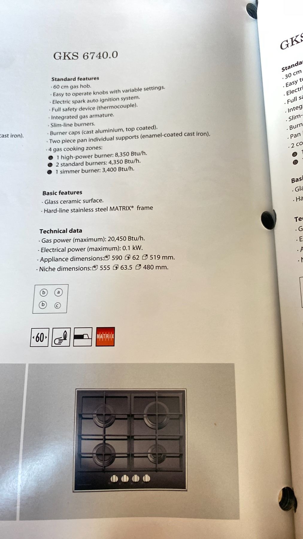 KUPPERSBUSCH GKS67440M GAS COOKTOP 23.25"W 20.5"D X 2.5"H